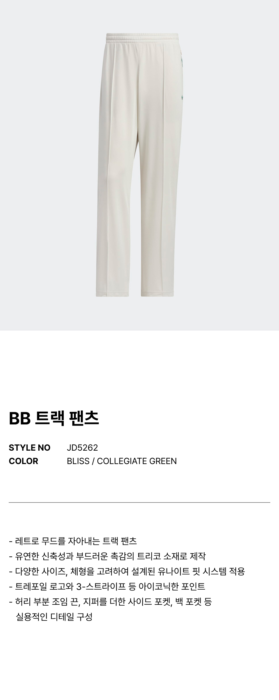 BB 트랙 팬츠 - 라이트그레이:그린 / JD5262