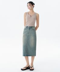 우먼즈 데님 미디 스커트 [워시드 블랙]