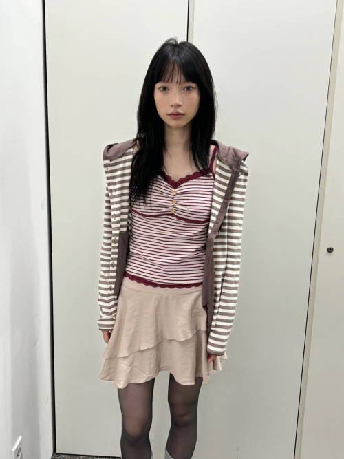 S : 총장(뒷목)- 30.3 가슴- 32 어깨 끈 (폭)- 0.8 밑단- 33.5 (cm)