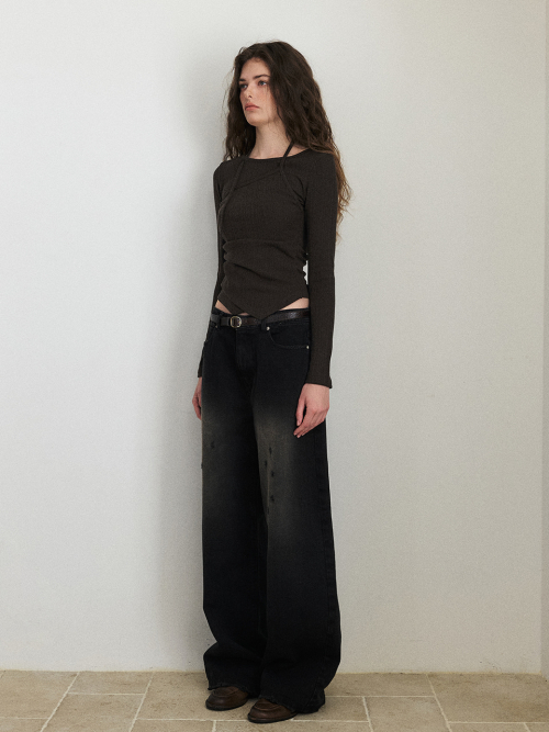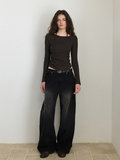 골반볼륨업 중진청 절개 와이드 부츠컷_골반뽕 청바지