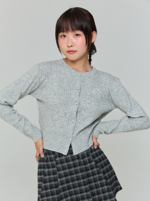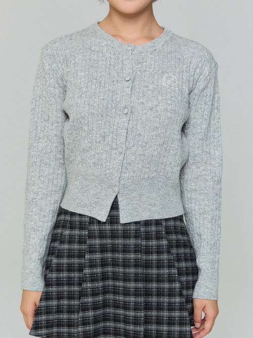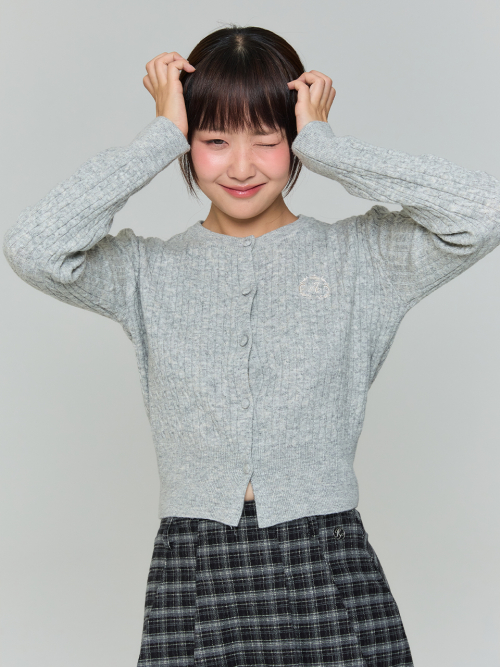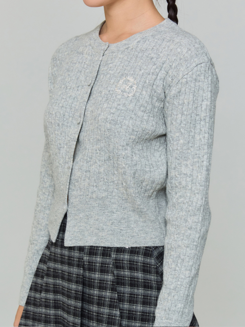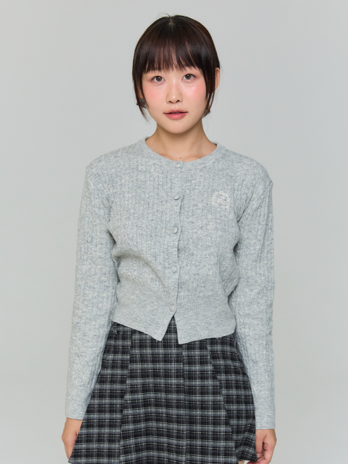 와펜 하트 패턴 가디건 - 그레이