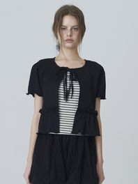 리본 레이스 프릴 가디건 - 블랙