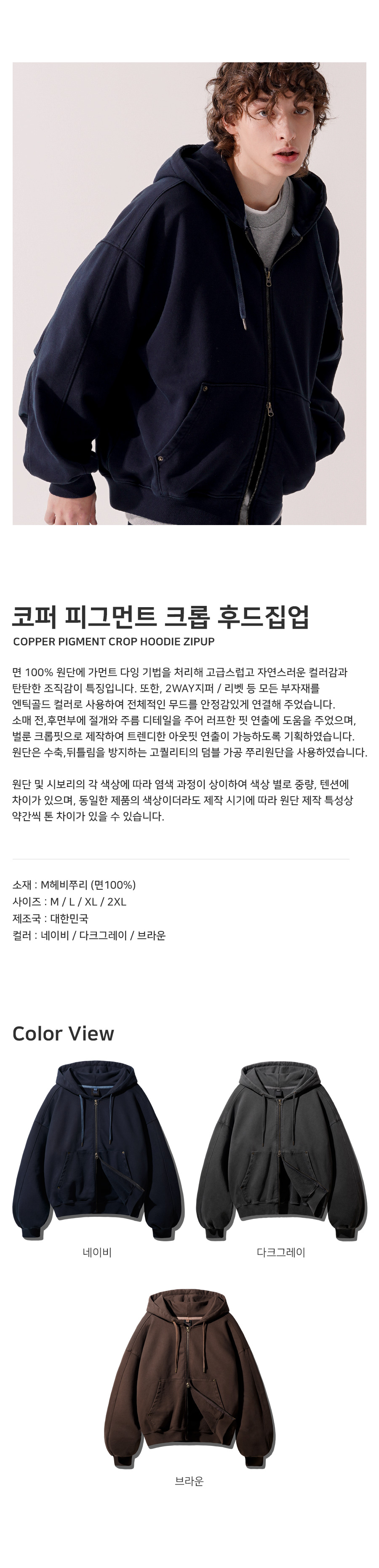 코퍼 피그먼트 크롭 후드집업 네이비 JYHD3570