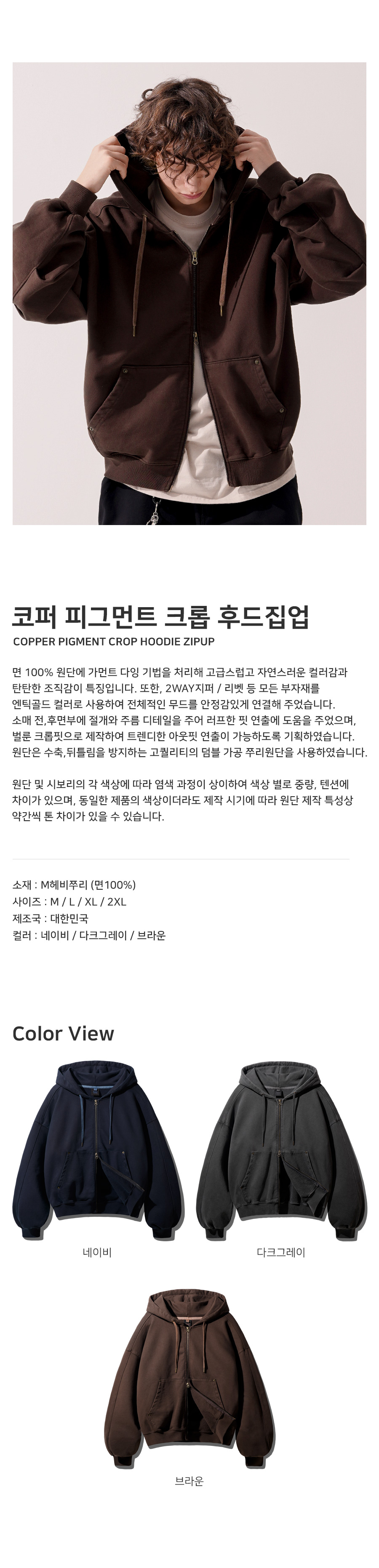 코퍼 피그먼트 크롭 후드집업 브라운 JYHD3570