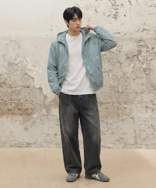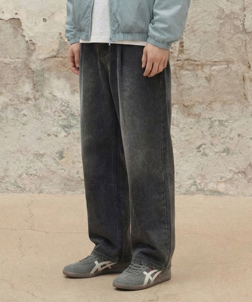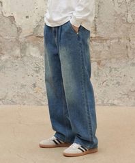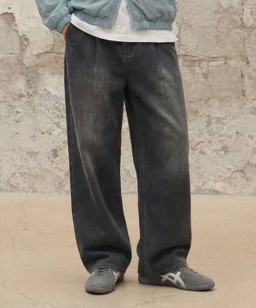 바이오워싱 원턱 와이드 데님 팬츠 [빈티지]