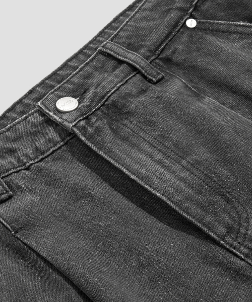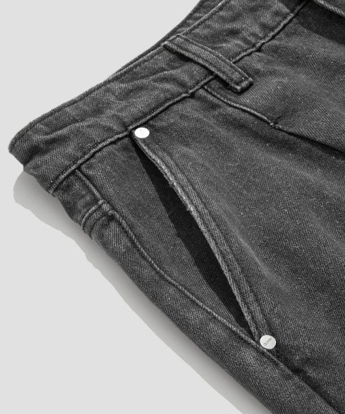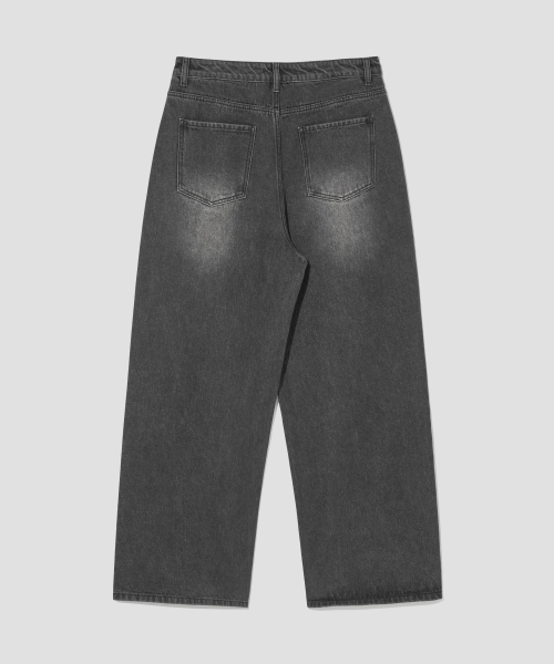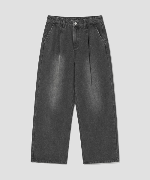 바이오워싱 원턱 와이드 데님 팬츠 [블랙]