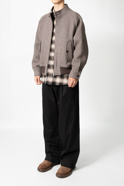- 트윌조직감이 두드러진 울 해링턴 자켓