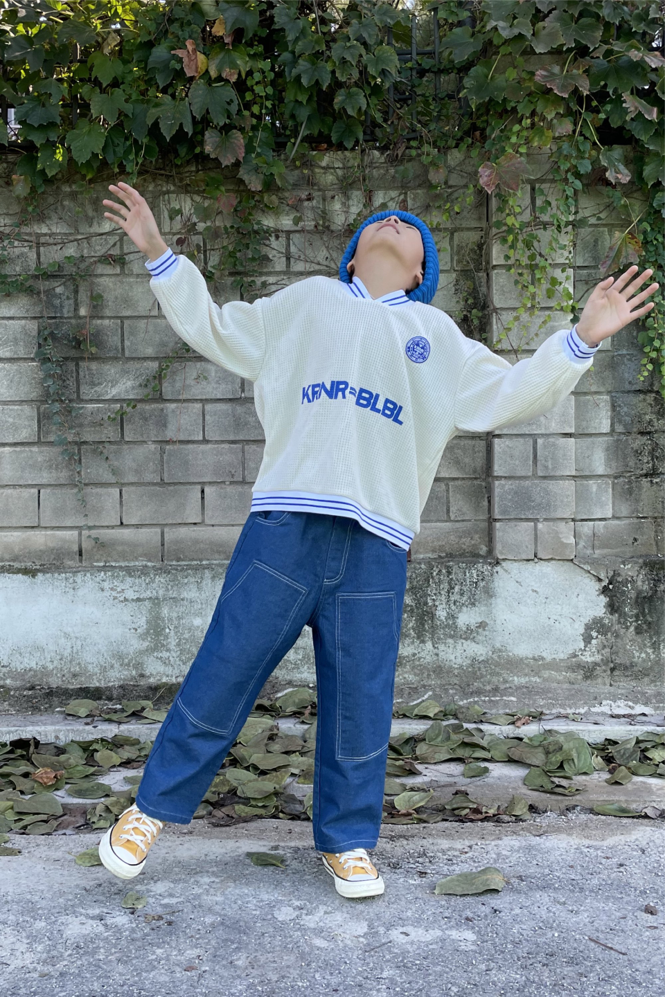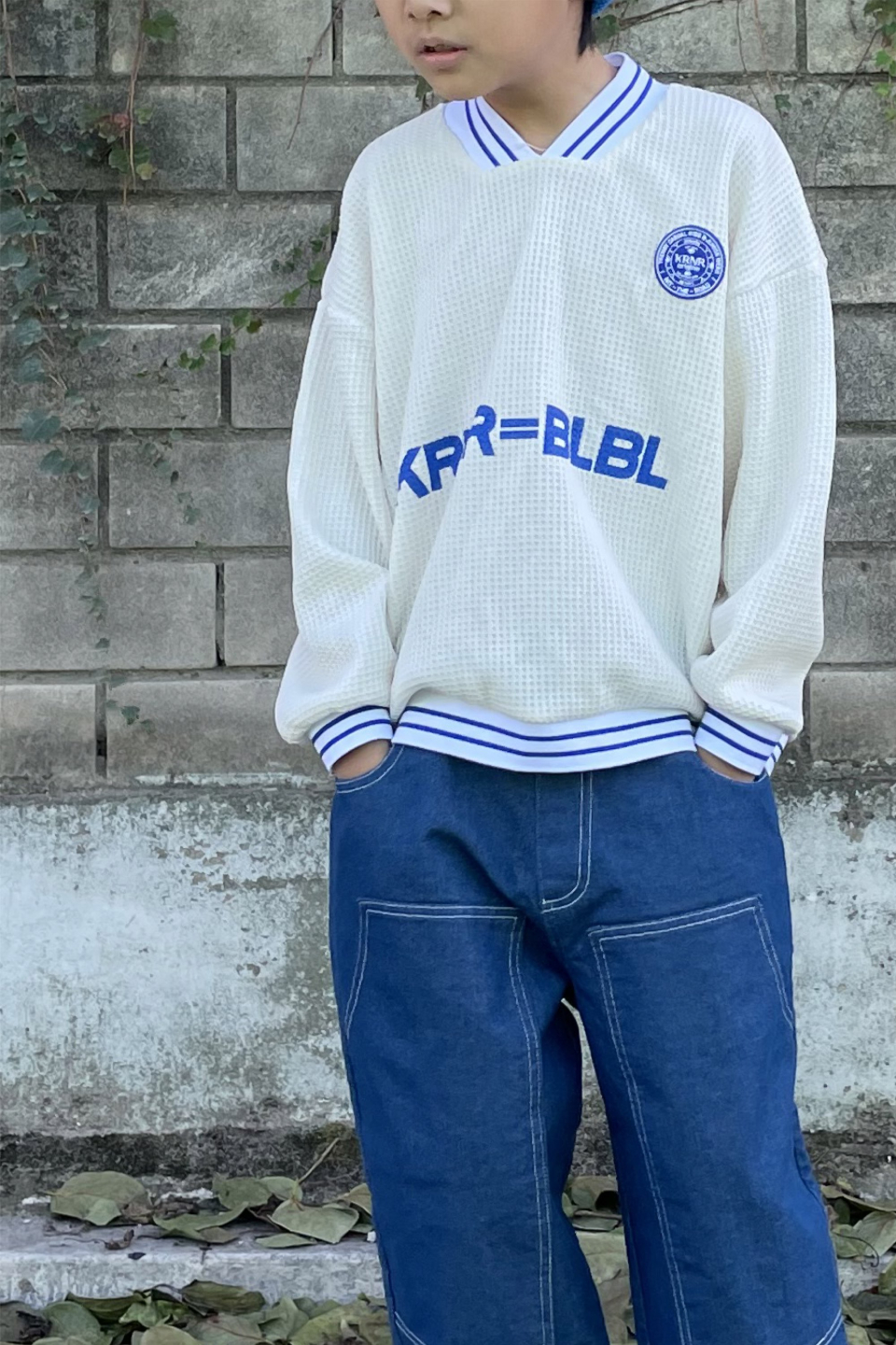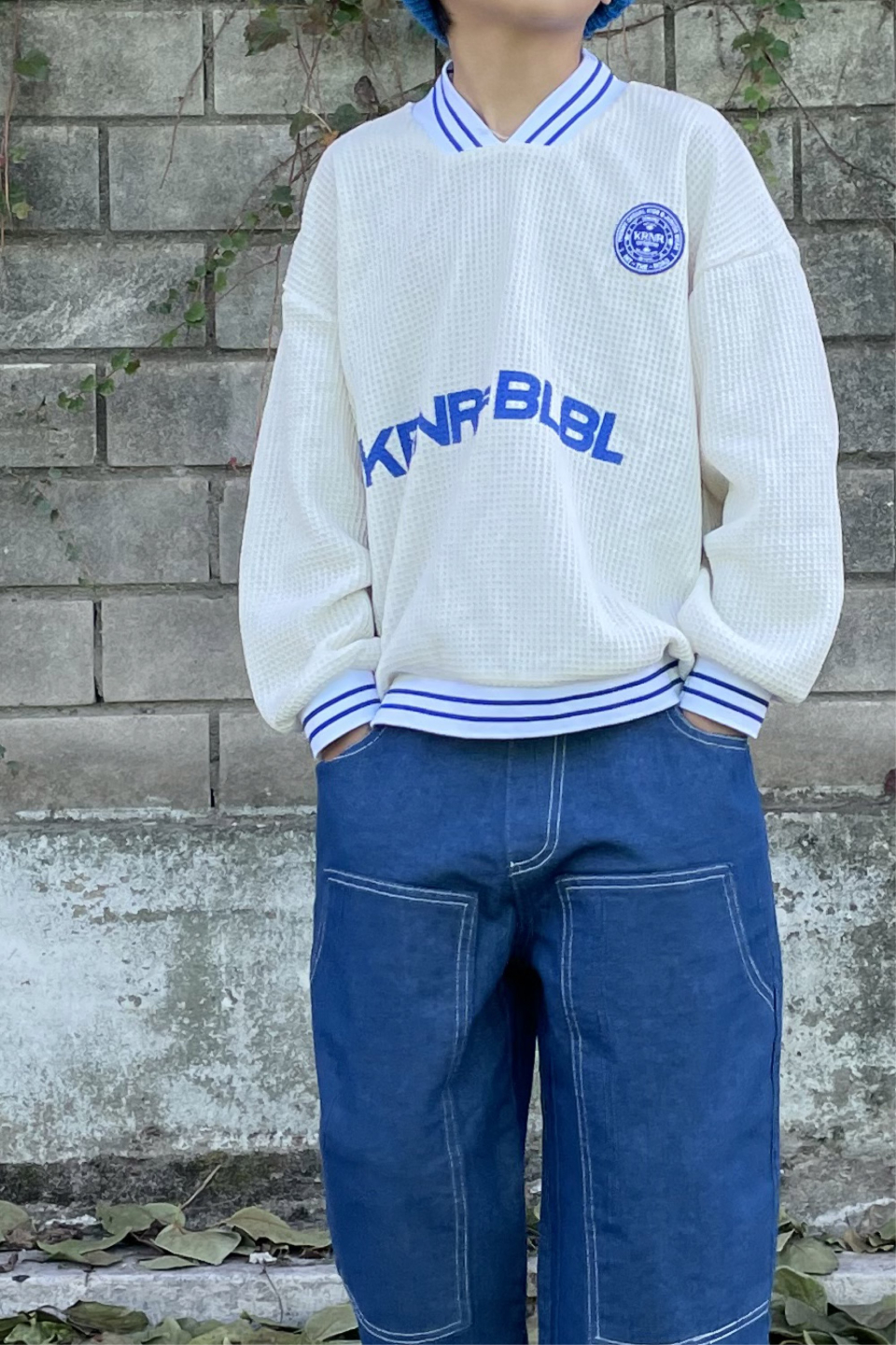 BLBL 브이넥 풋볼 맨투맨 아이보리