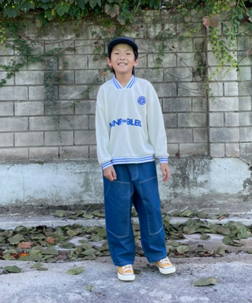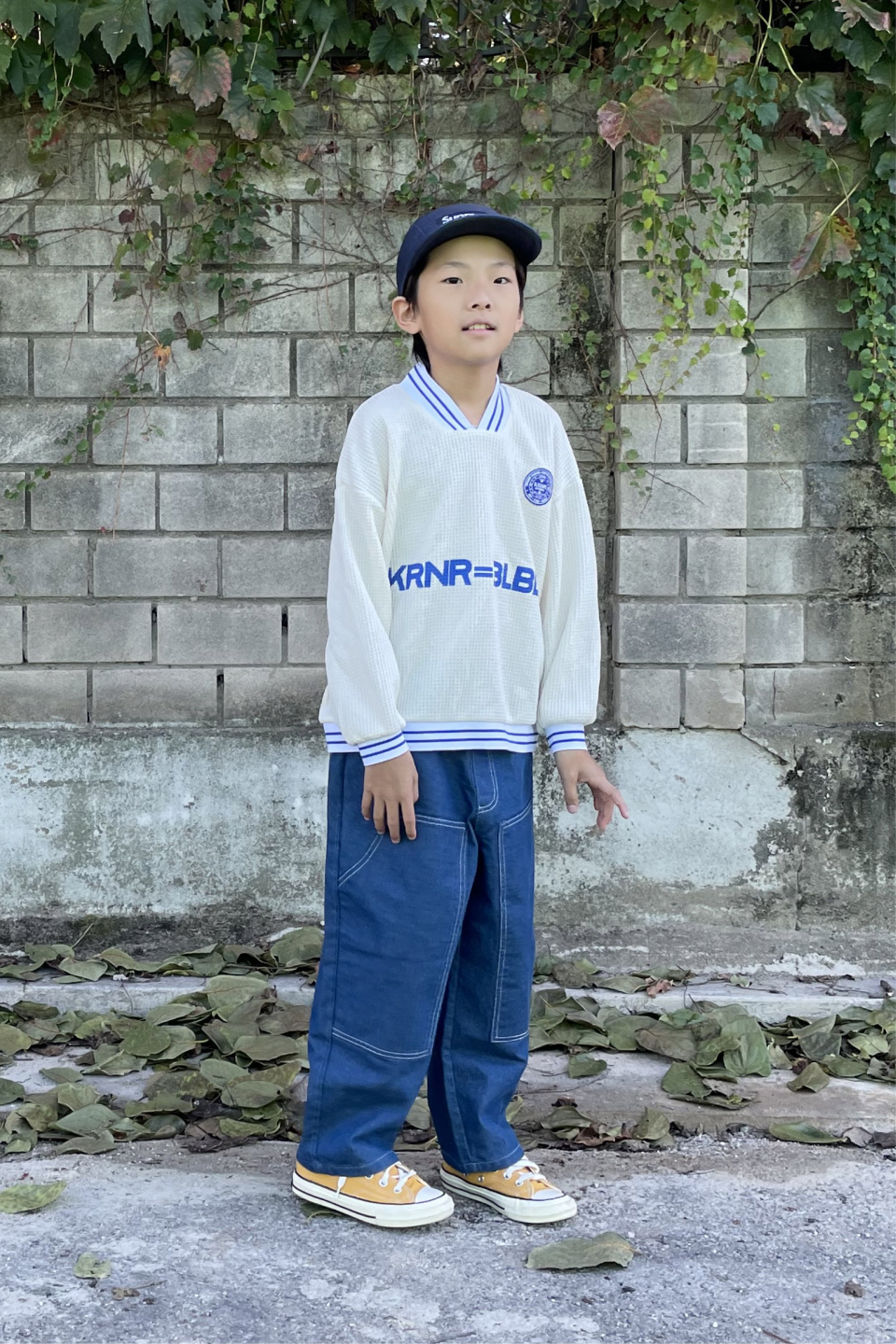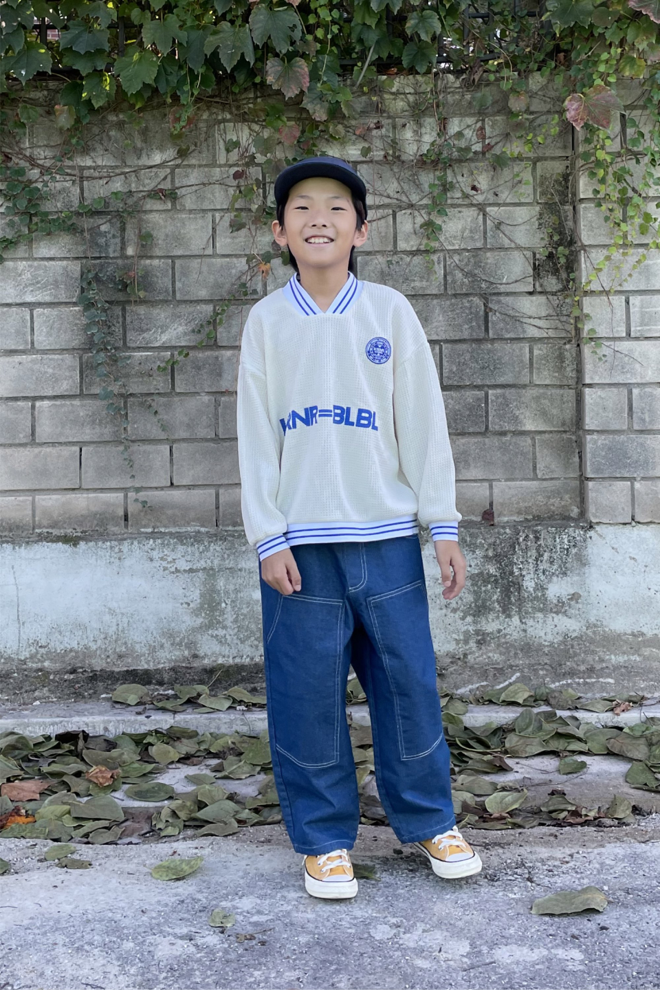BLBL 브이넥 풋볼 맨투맨 아이보리