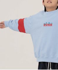 아트 오버사이즈 슬리브 컬러 블록 맨투맨 라이트블루