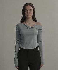 Wave Off Shoulder T-Shirt - Sky Blue