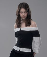 Off Shoulder Puff T-Shirt - Black