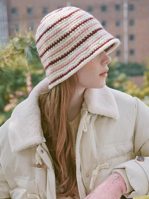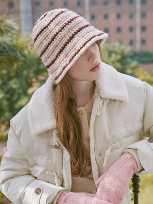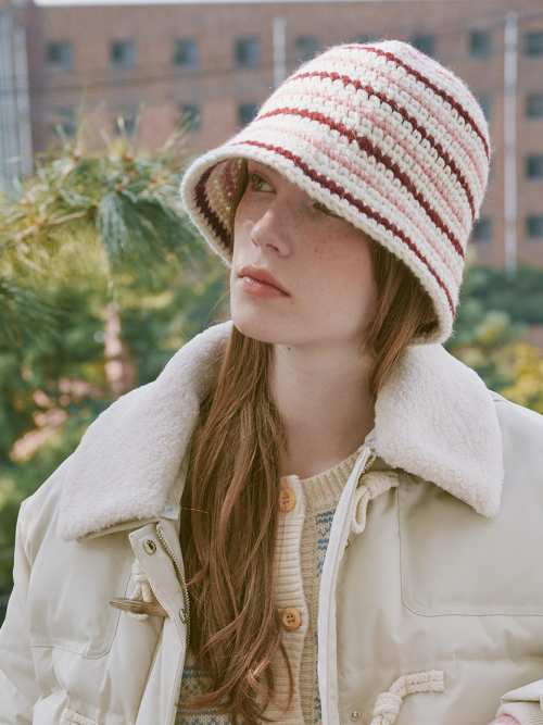 투웨이 이어플랩 비니 스트라이프 그린믹스