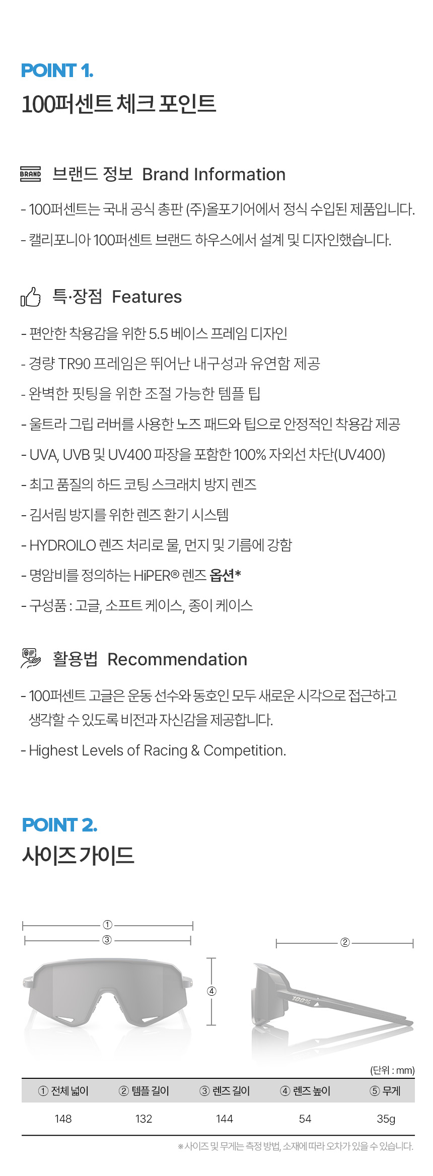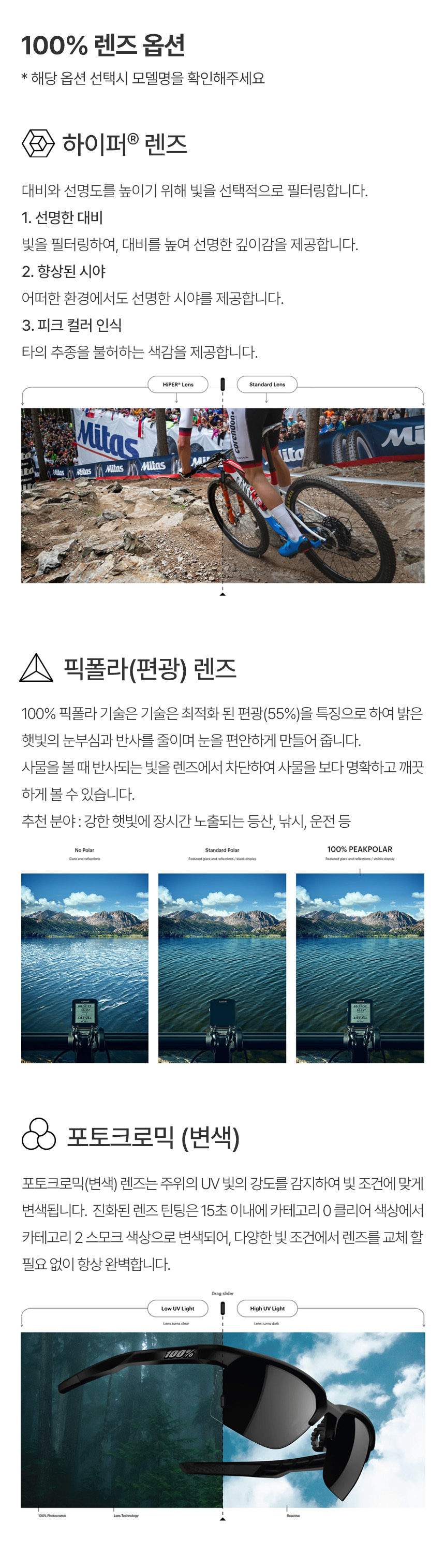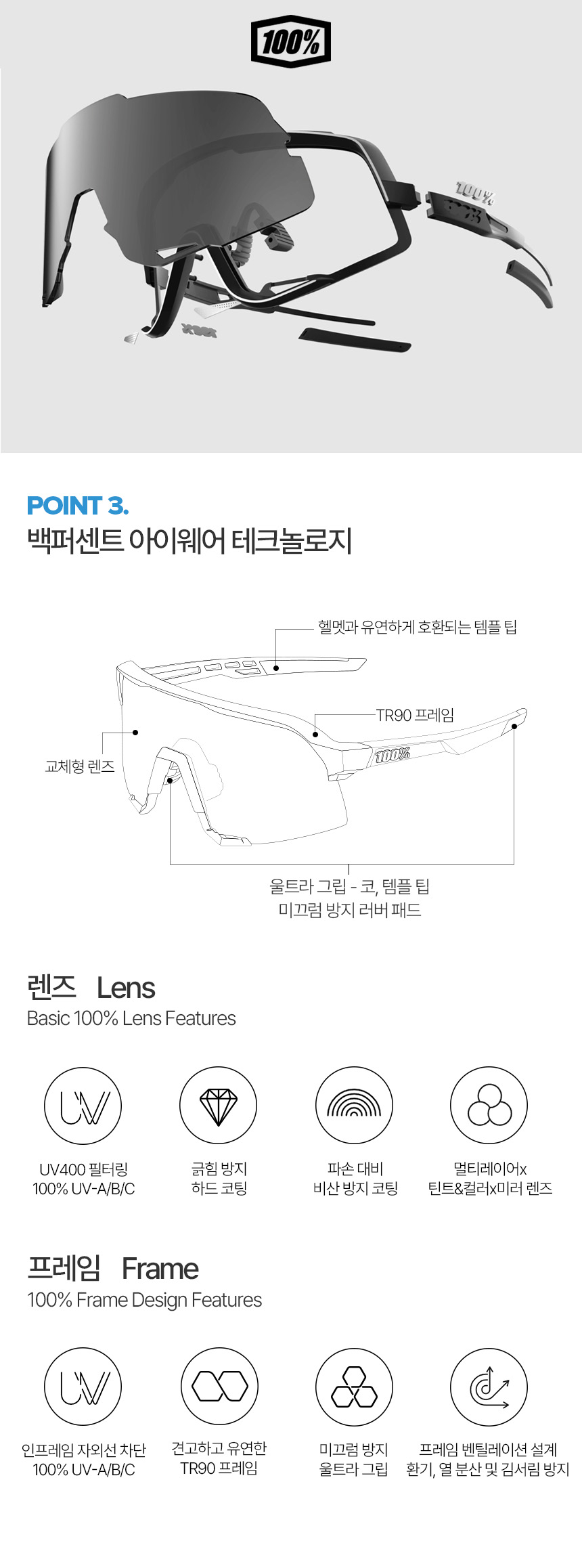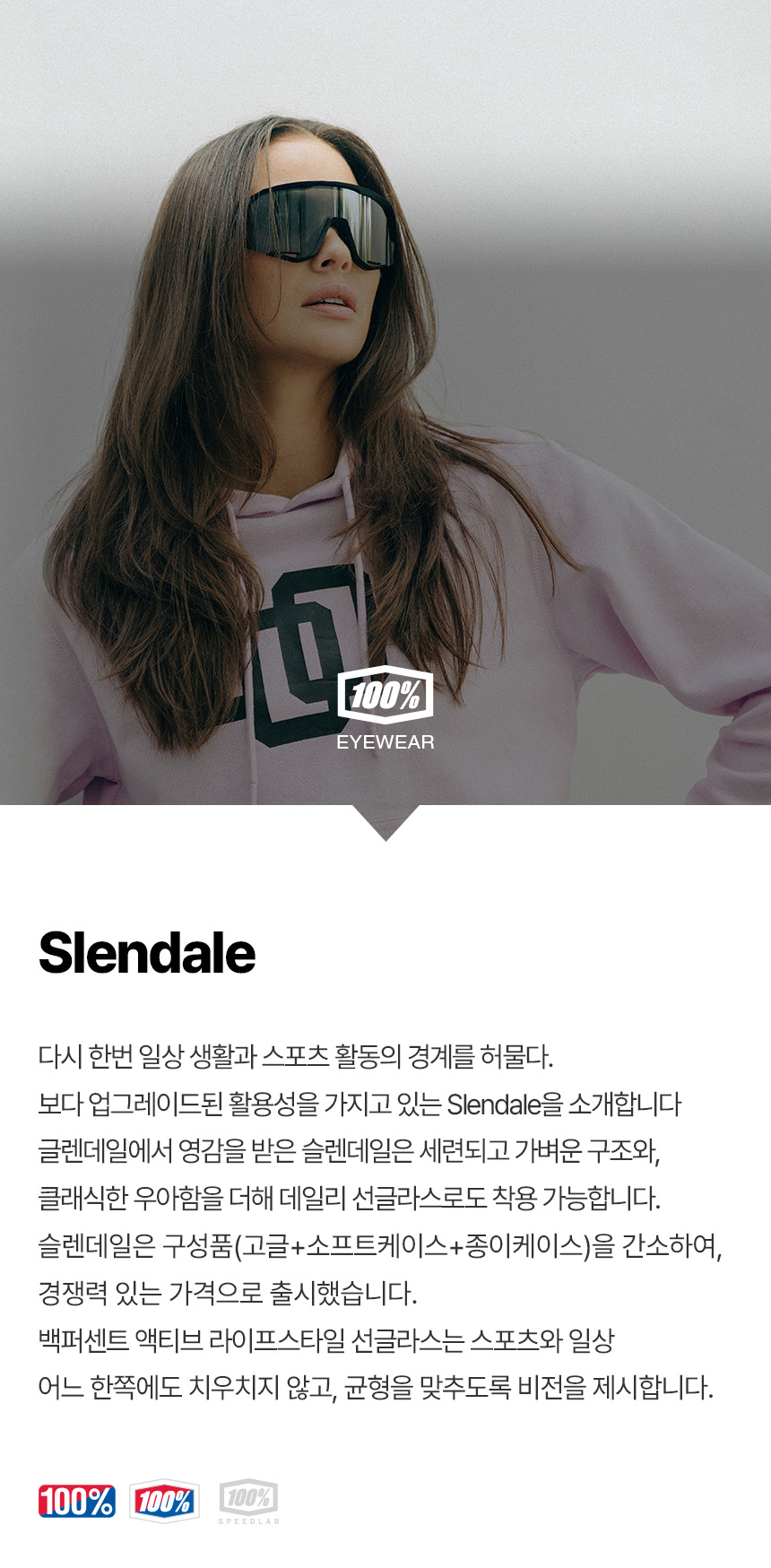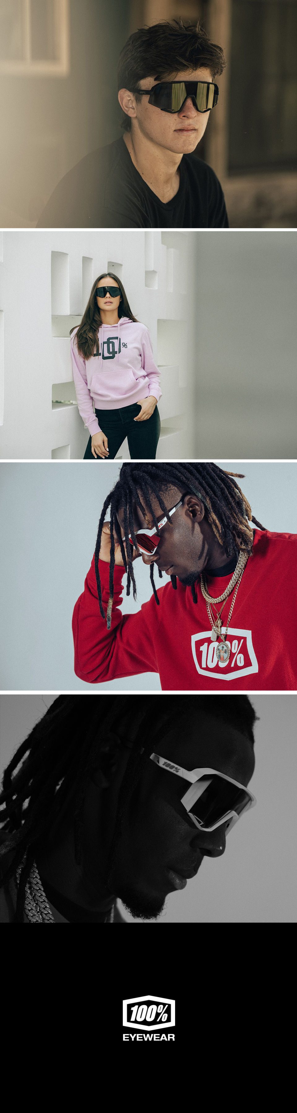 100%(백퍼센트)는 1980년대 초반 LA에서 시작된 이후 모터크로스 분야에서 큰 명성을 얻었습니다. 이후 레이싱 라이딩, 트레일 러닝 등 다양한 스포츠 분야까지 제품군을 폭넓게 확장하여 각 분야 최고의 선수들과 함께 브랜드 가치를 높이고 있습니다.