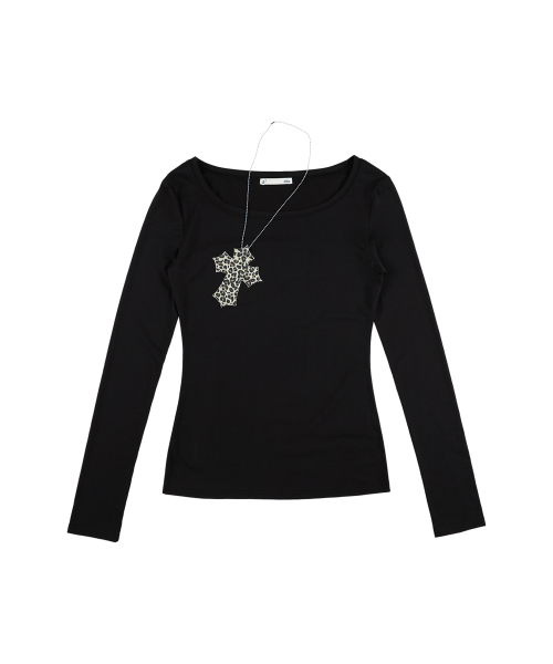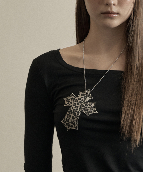 Black leopard cross necklace top