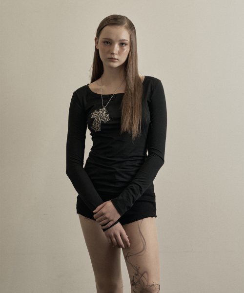 [유인 PICK] Layered Bustier Long Sleeve (FL-105_Charcoal Melange)