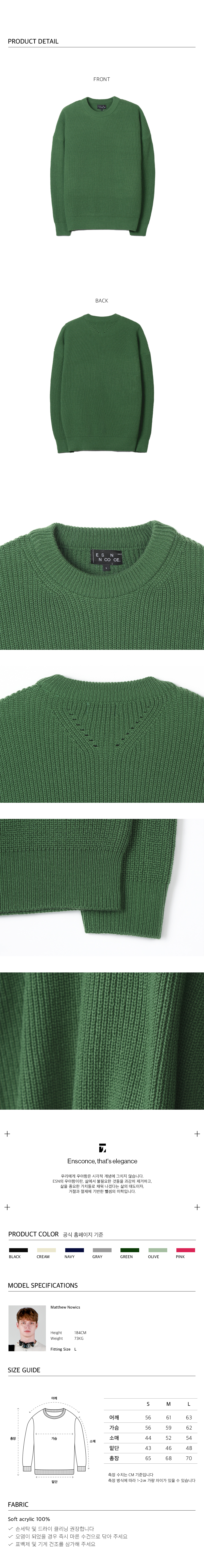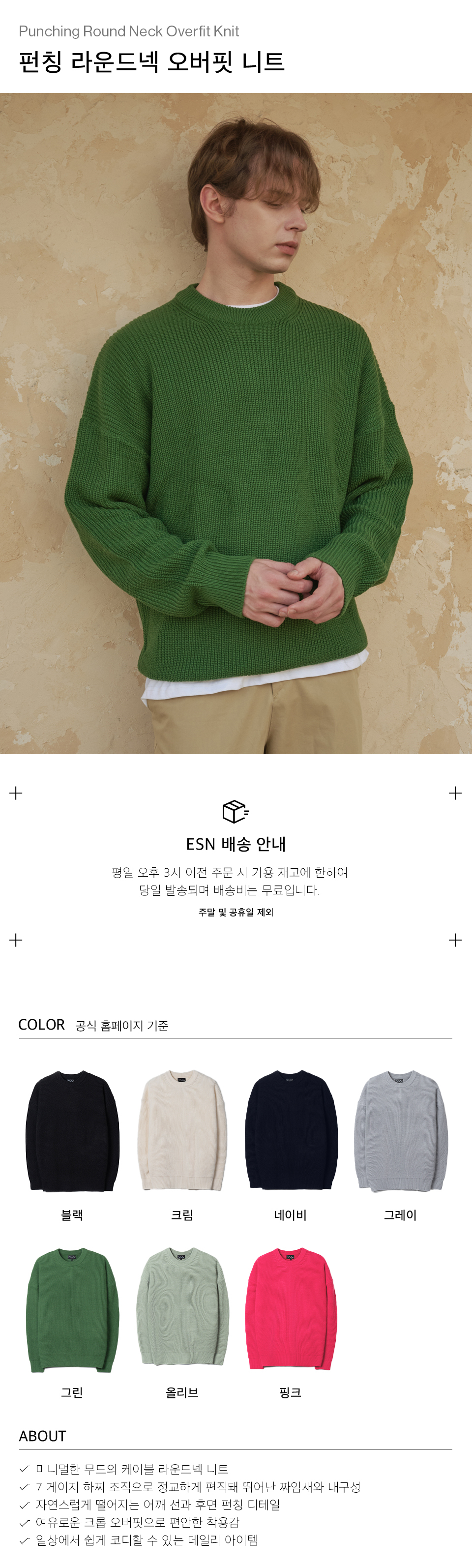 펀칭 라운드넥 오버핏 니트 그린