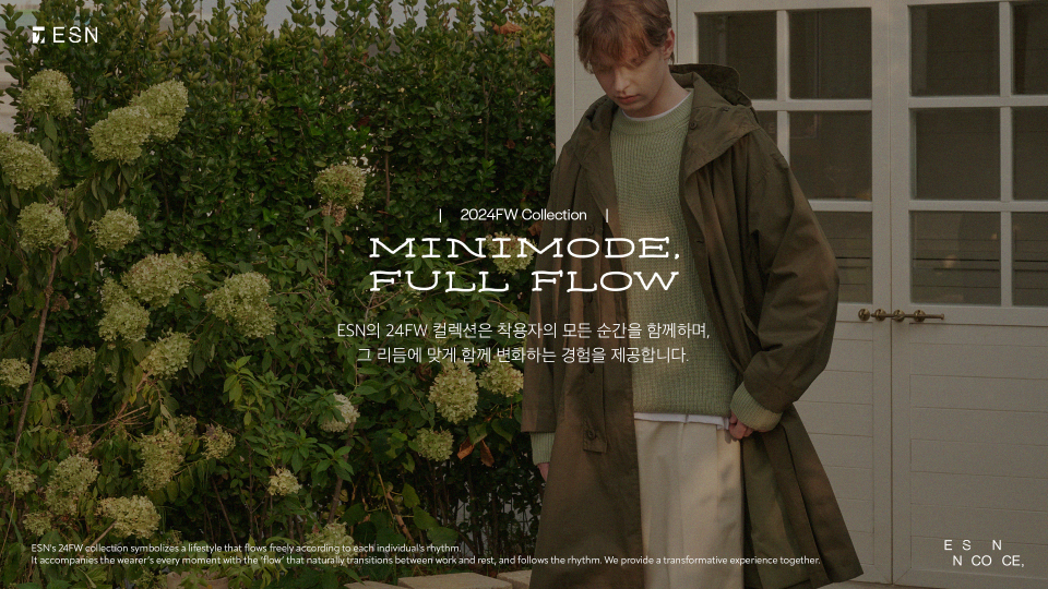 이에스엔(ESN)은 심플함과 모던함을 중심으로 트렌드를 대중적으로 해석하여 미니멀한 무드를 각각의 아이템에 풀어내며, 합리적인 가격으로 퀄리티 높은 제품을 소비자에게 제안하는 미니멀 컨템포러리 브랜드입니다.