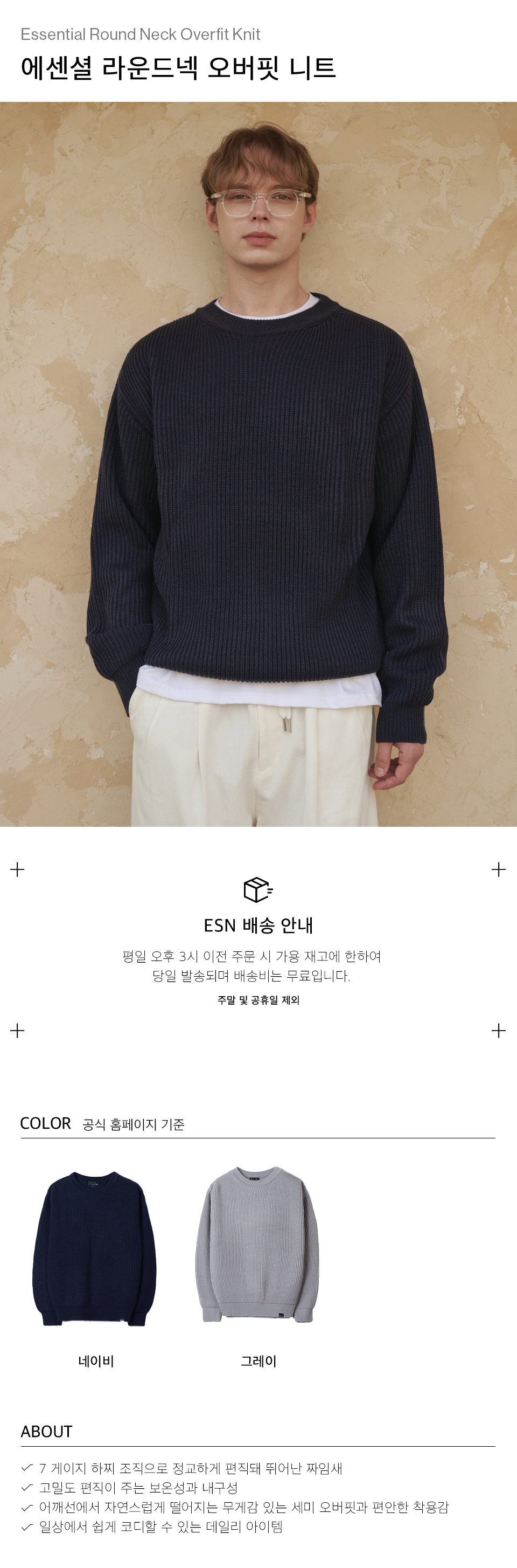 에센셜 라운드넥 오버핏 니트 네이비