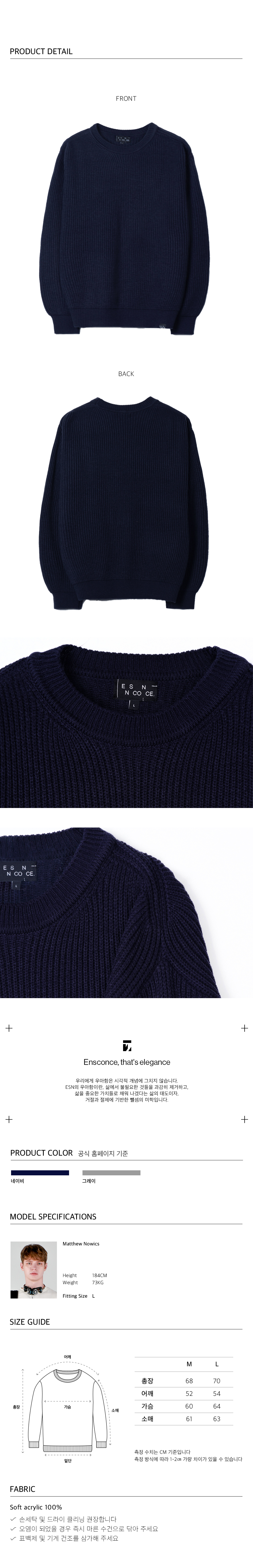 이에스엔(ESN)은 심플함과 모던함을 중심으로 트렌드를 대중적으로 해석하여 미니멀한 무드를 각각의 아이템에 풀어내며, 합리적인 가격으로 퀄리티 높은 제품을 소비자에게 제안하는 미니멀 컨템포러리 브랜드입니다.