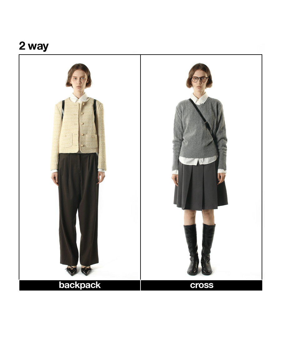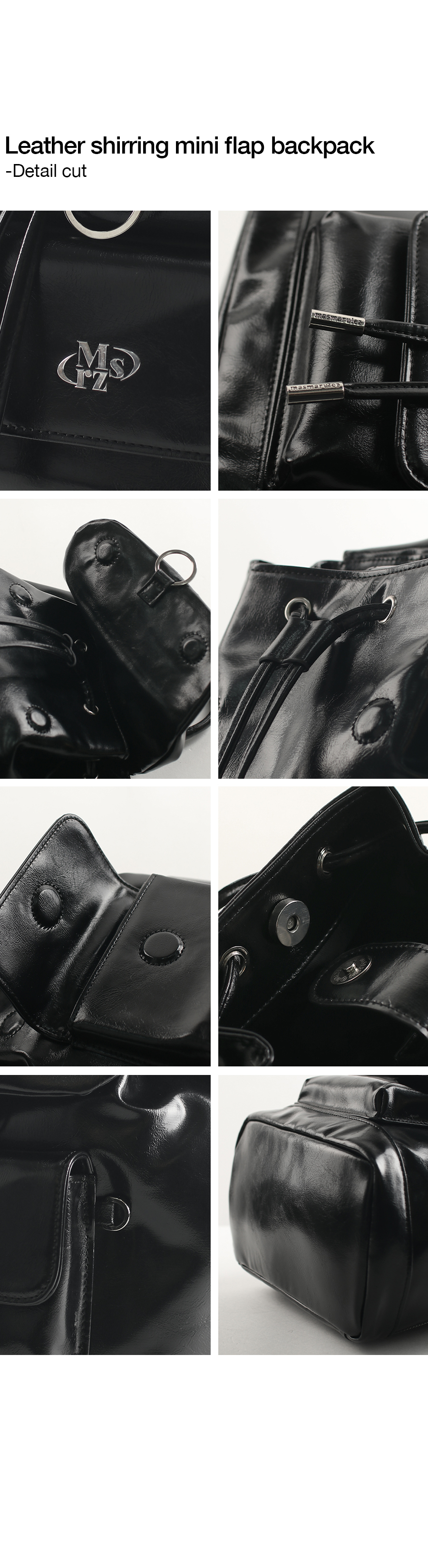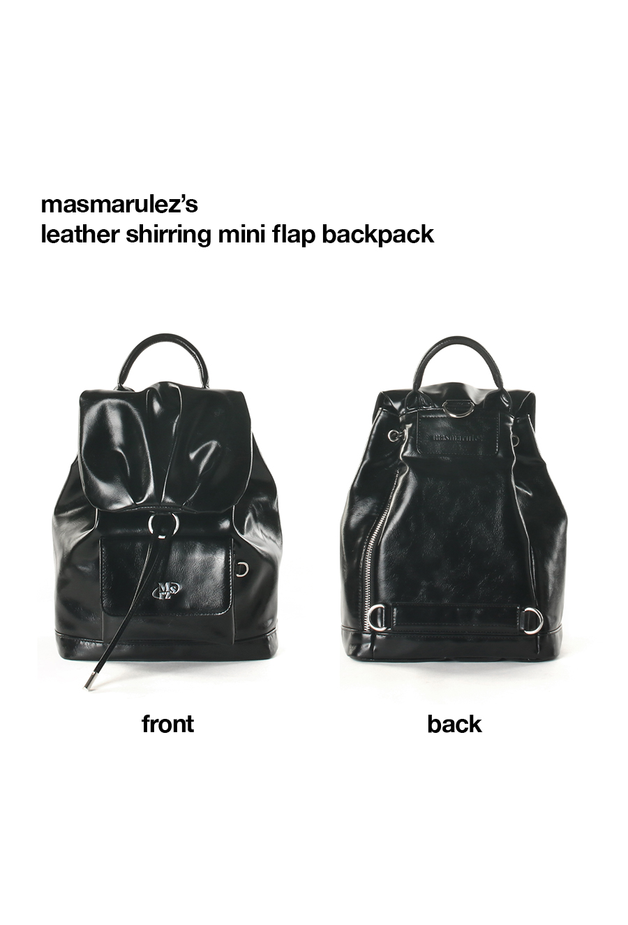 mini ver. Glossy belted flap backpack_Black
