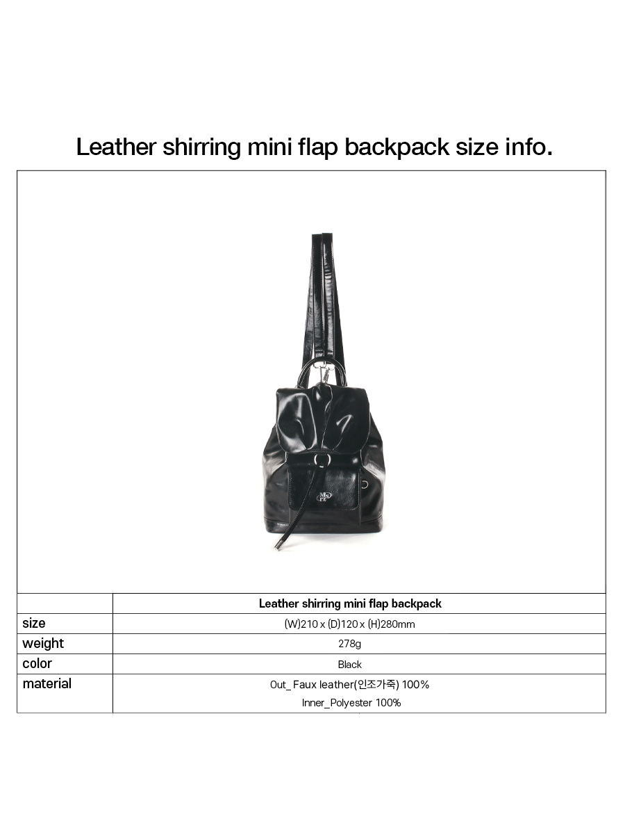 Leather shirring mini flap backpack _ Black