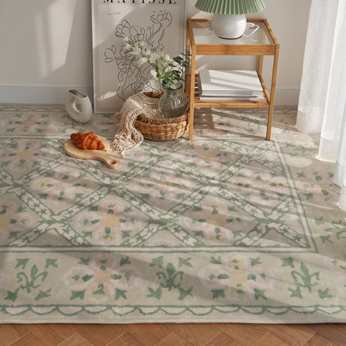 먼지없는 워셔블 클래식 빈티지 그린 체크 디자인 거실 러그 엔틱그린