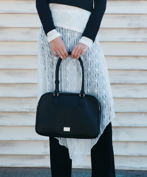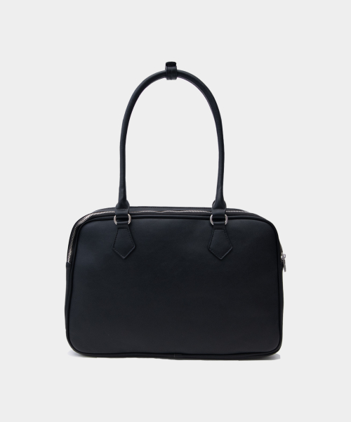 빅 스퀘어 레더 바게트 숄더 도트백 [블랙]