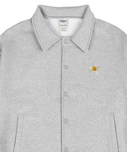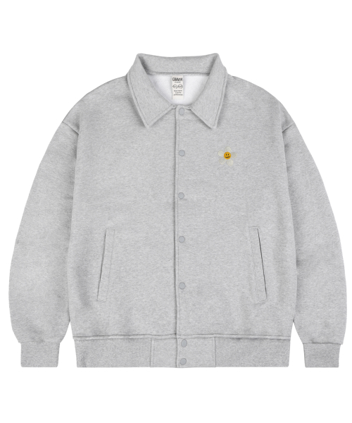 [UNISEX]플라워도트 자수 스타디움 바시티 자켓_그레이