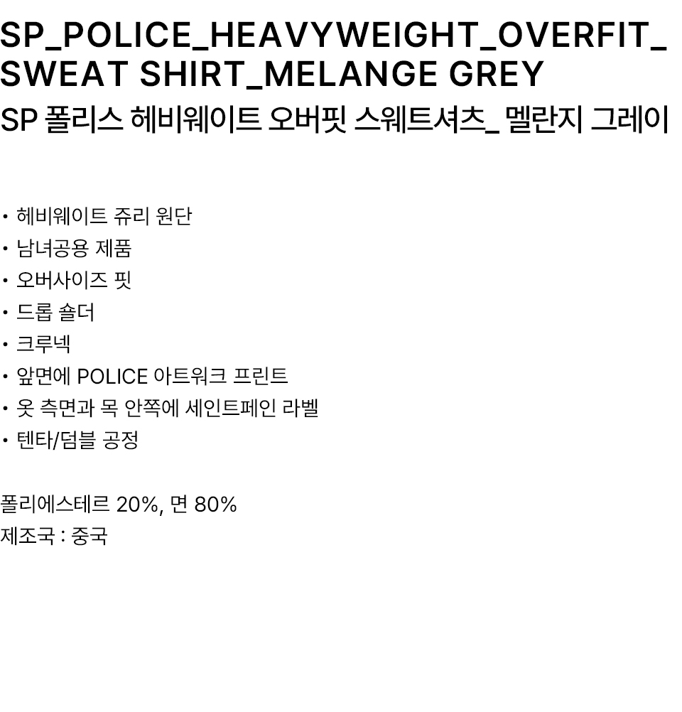 SP 폴리스 헤비웨이트 오버핏 스웨트셔츠 멜란지 그레이