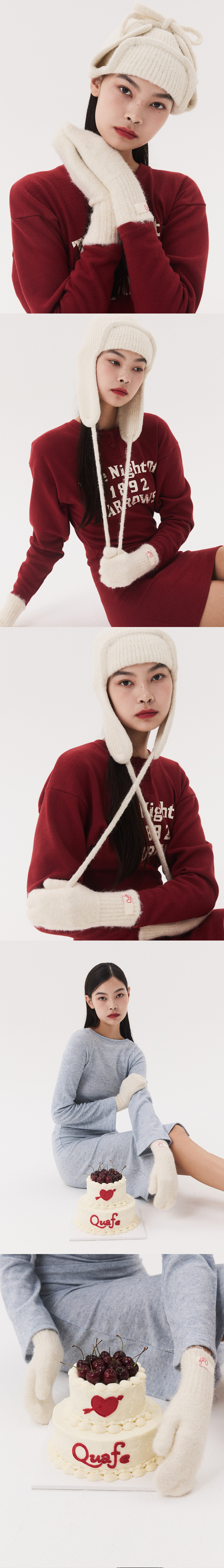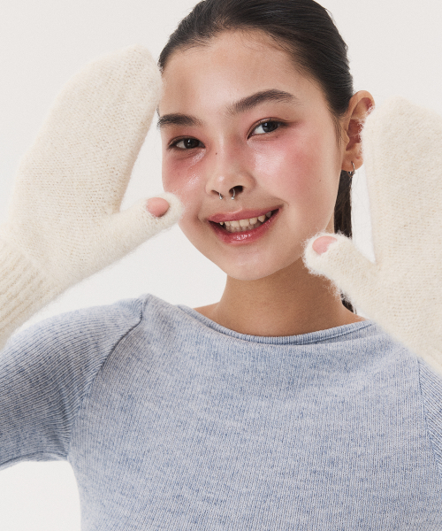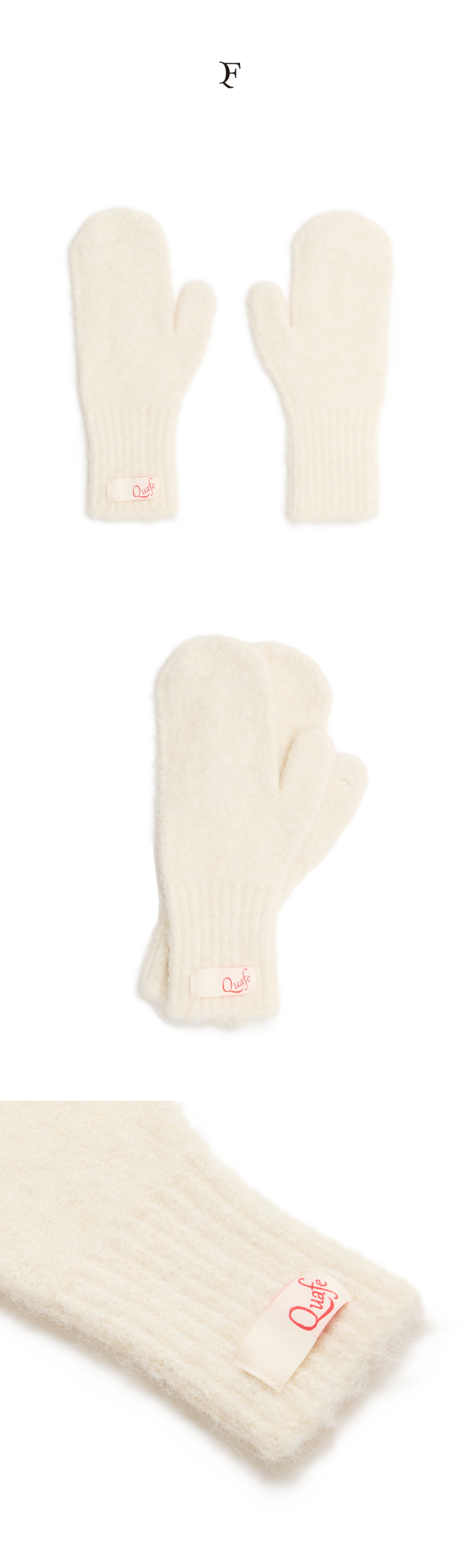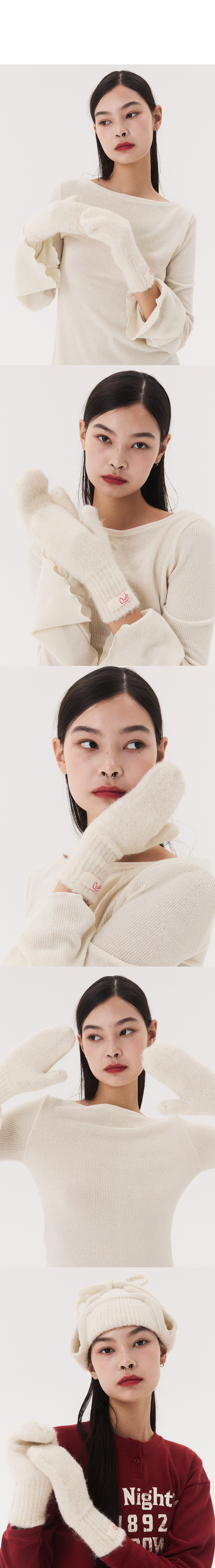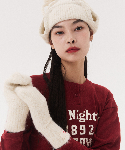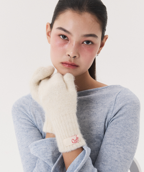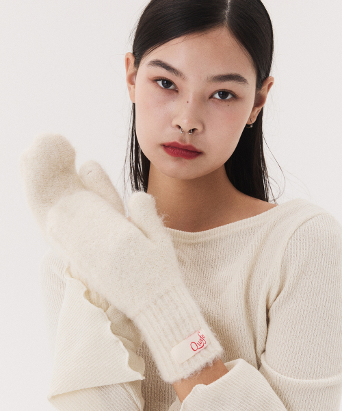 LABEL KNITTED MITTENS_ivory