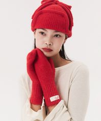 LABEL KNITTED MITTENS_red