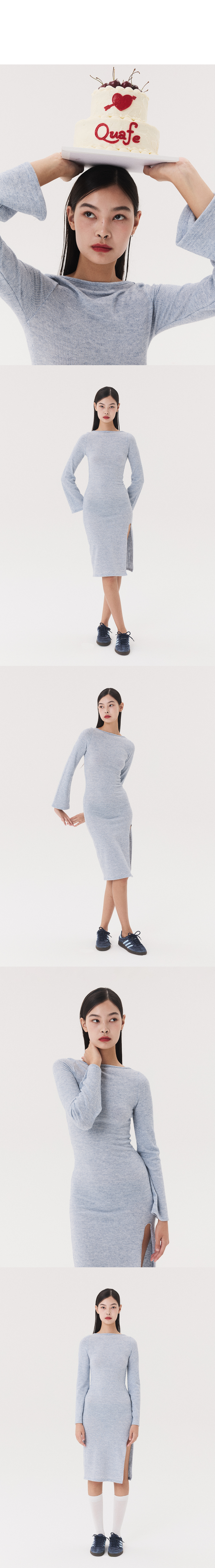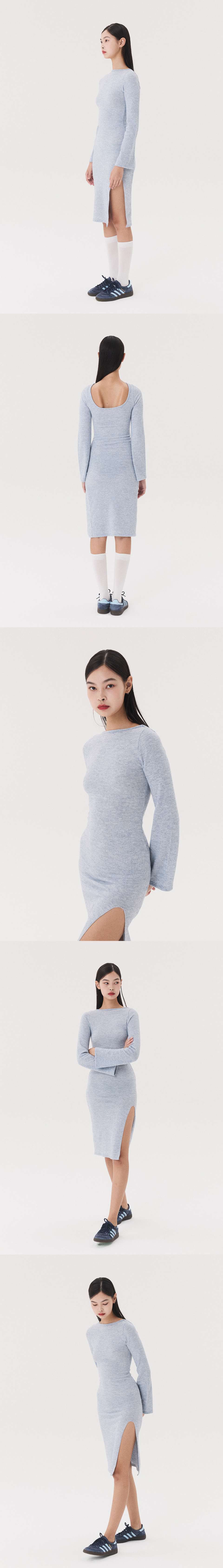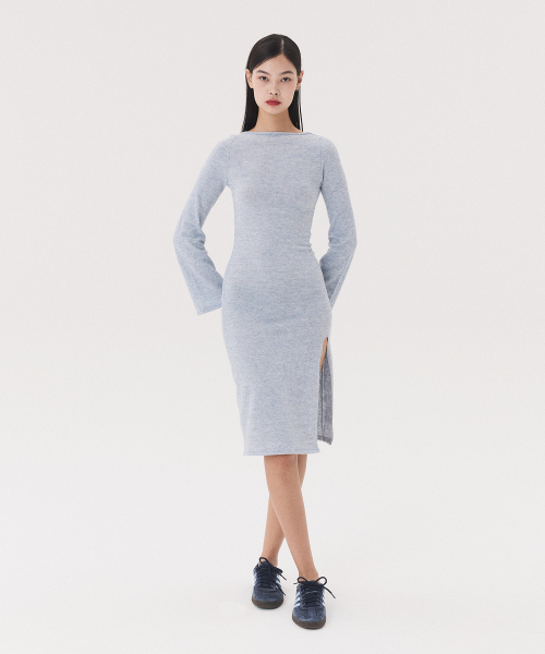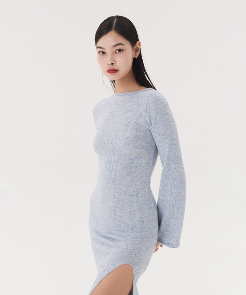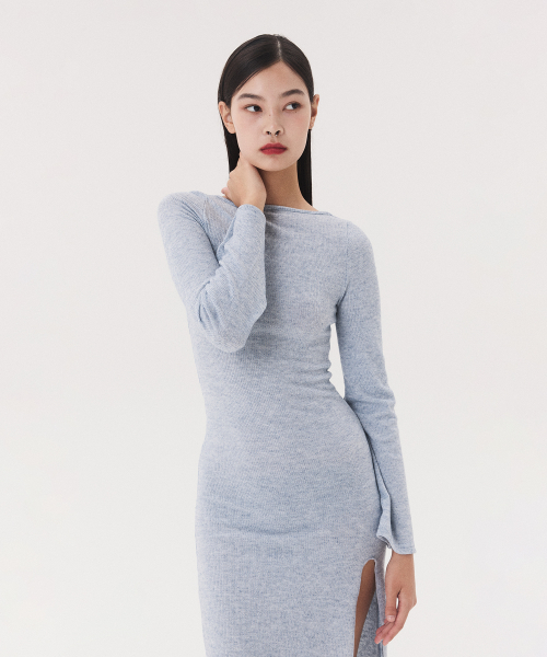 KNIT LONG SLIT DRESS_melange blue