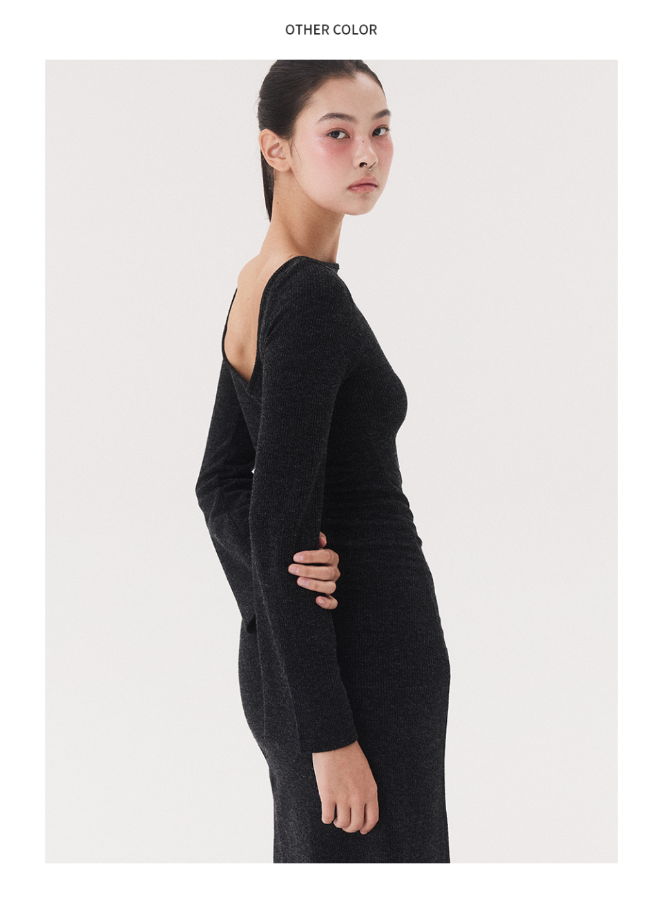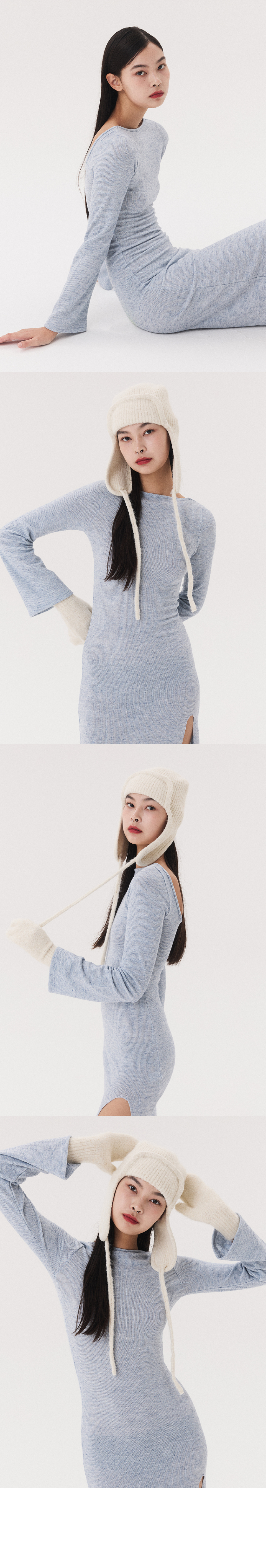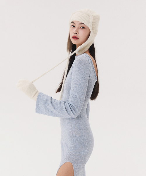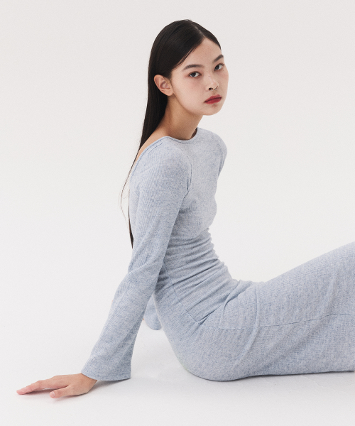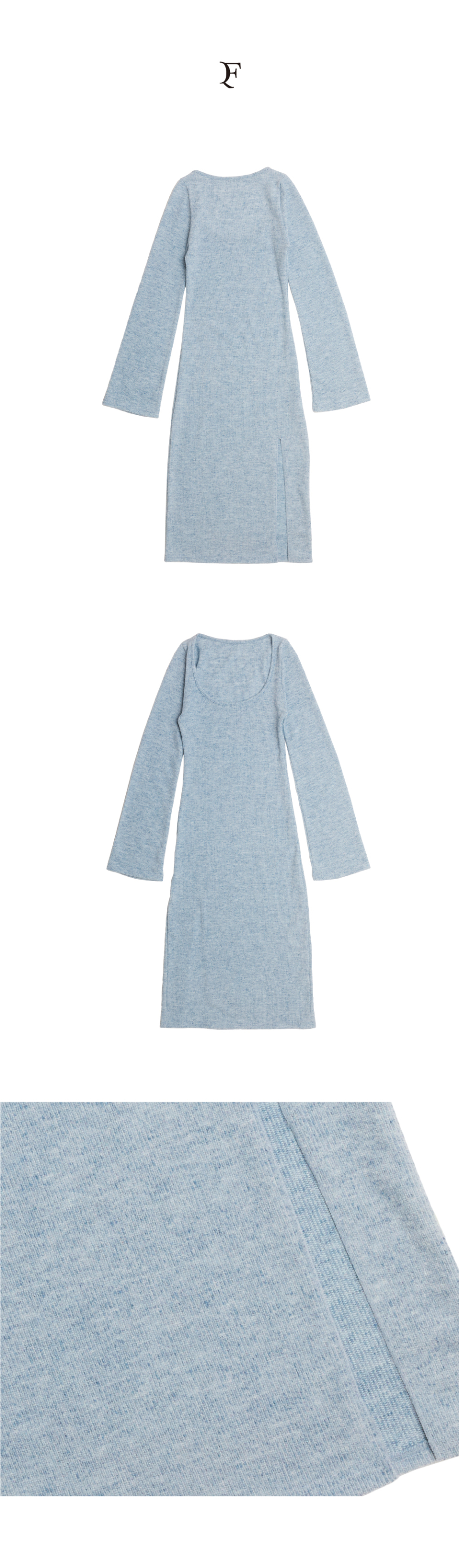 KNIT LONG SLIT DRESS_melange blue