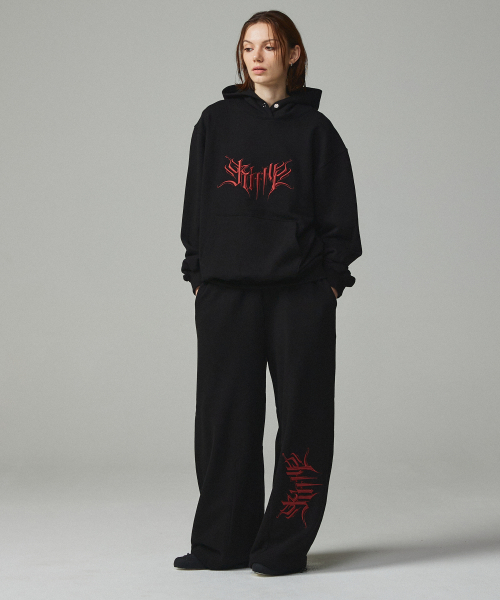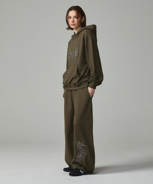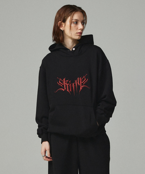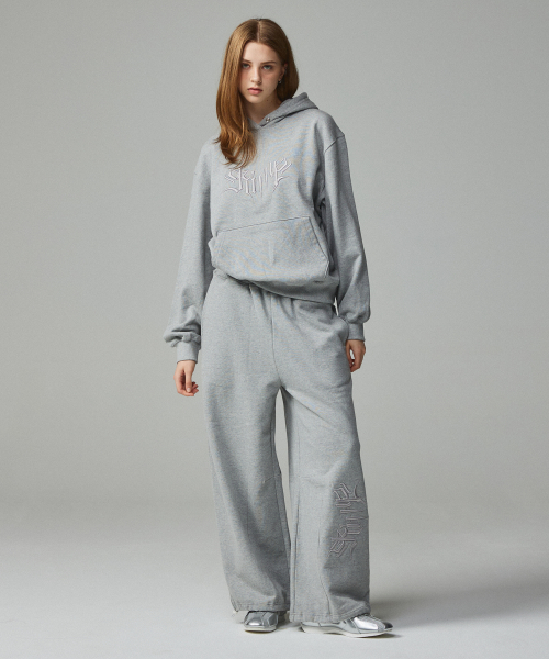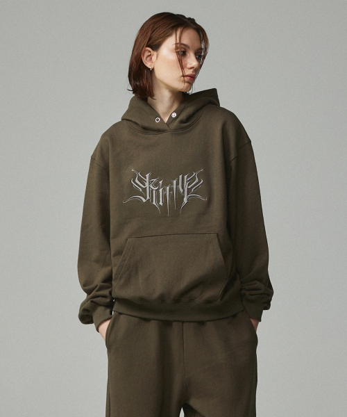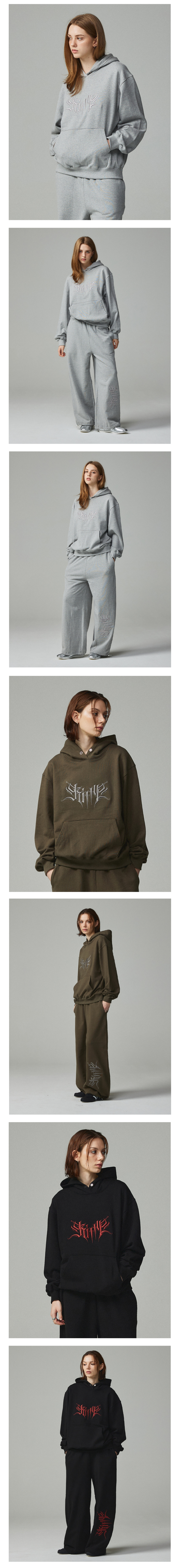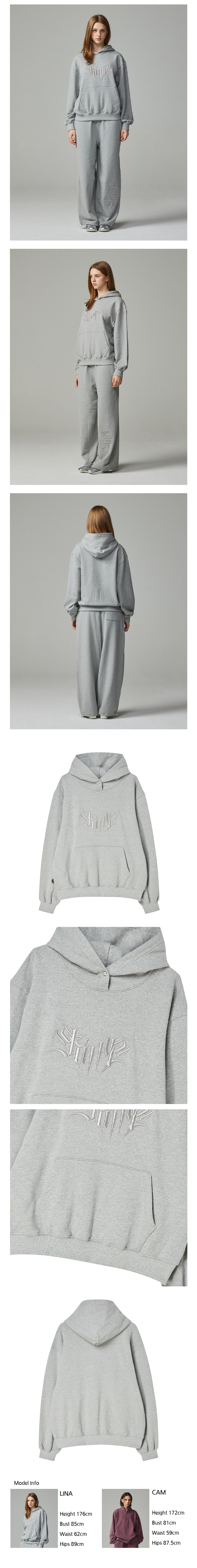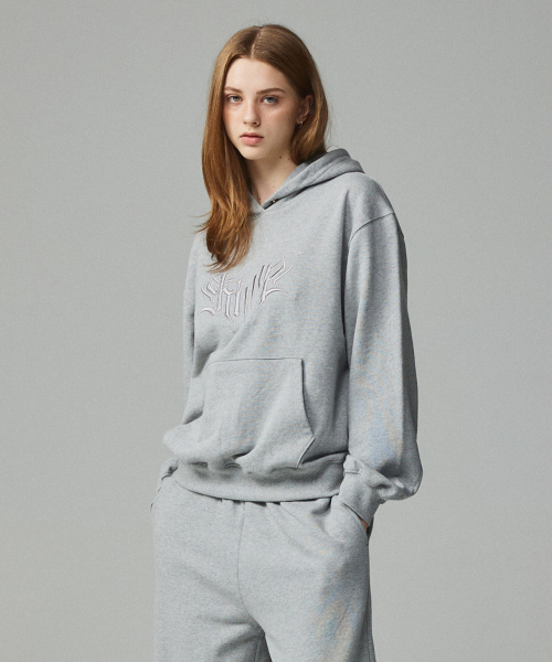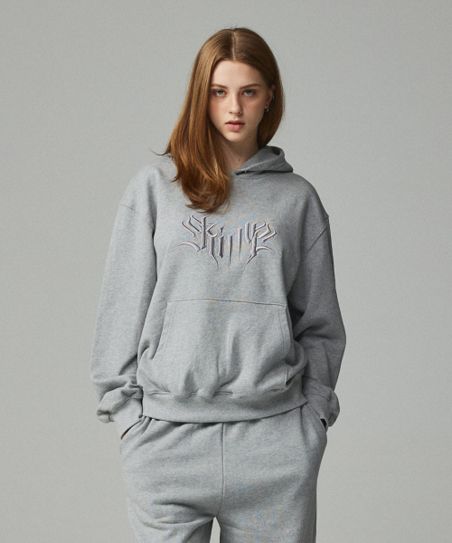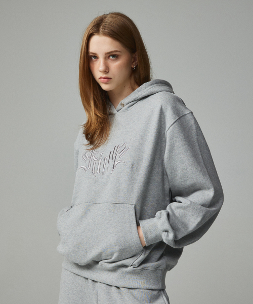 오버핏 스트릿 레터링 자수 후드티 멜란지그레이