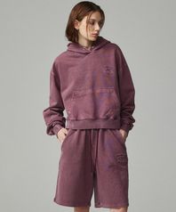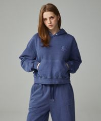 피그먼트 어센틱 자수 크롭 후드 네이비