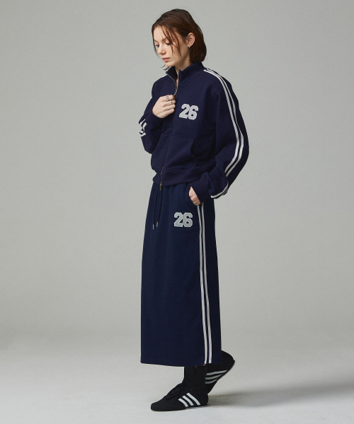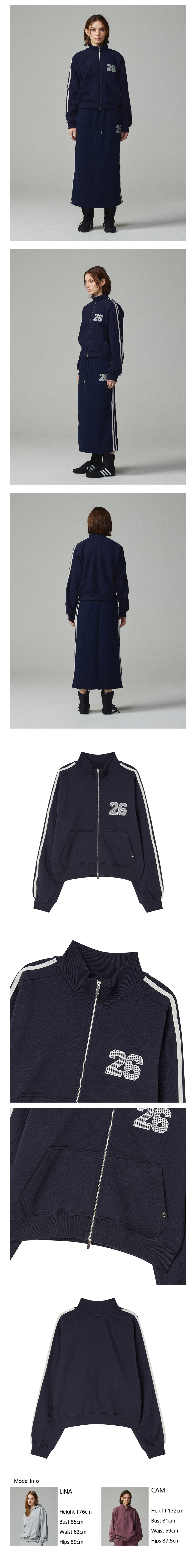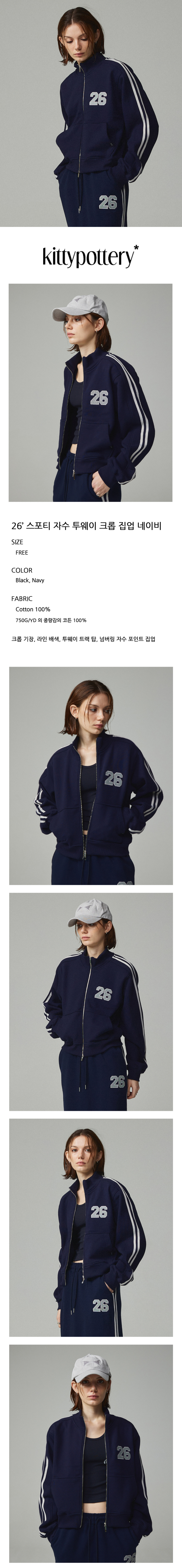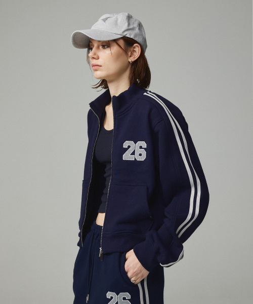 26 스포티 자수 투웨이 크롭 집업 네이비