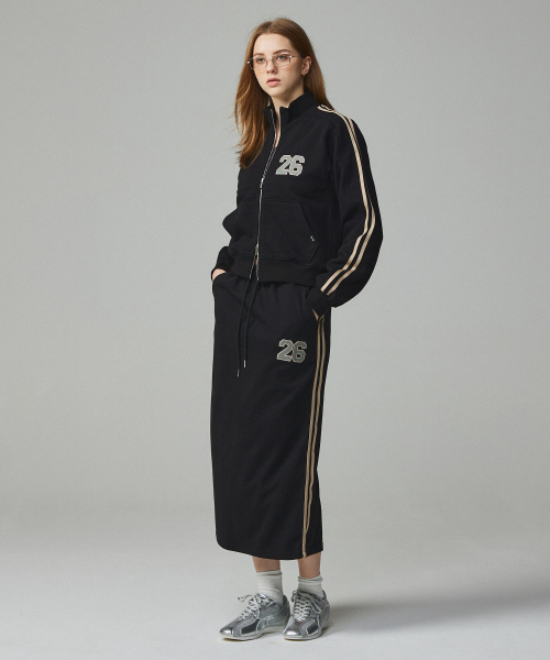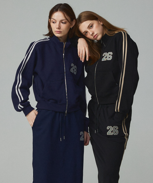 26 스포티 자수 투웨이 크롭 집업 블랙