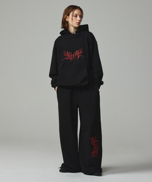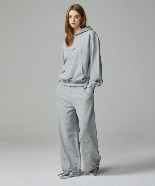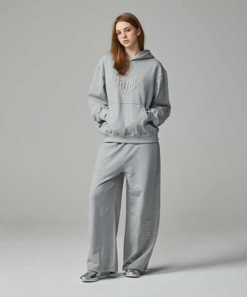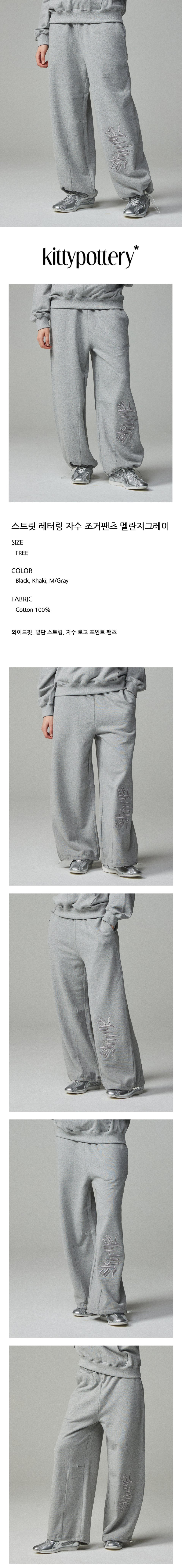 스트릿 레터링 자수 조거팬츠 멜란지그레이