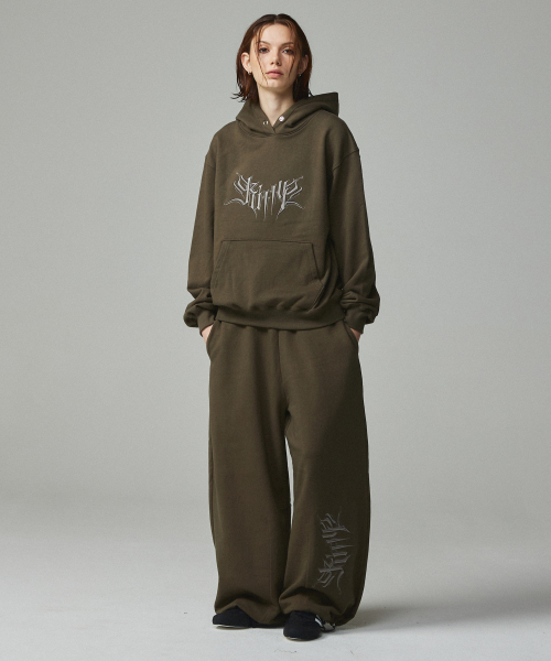 스트릿 레터링 자수 조거팬츠 카키