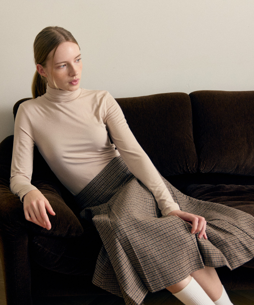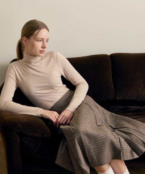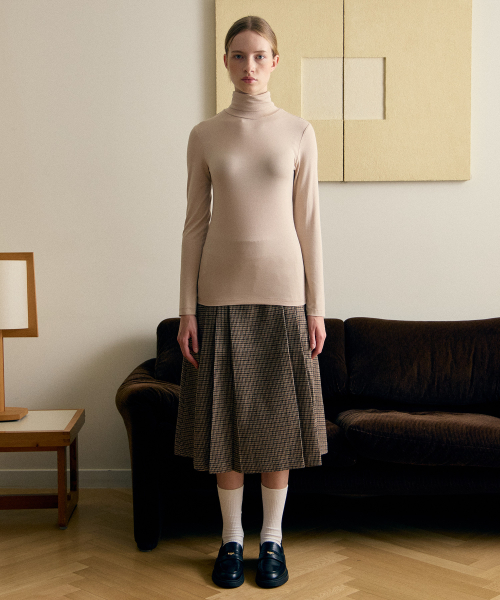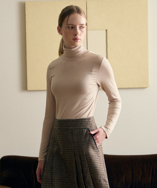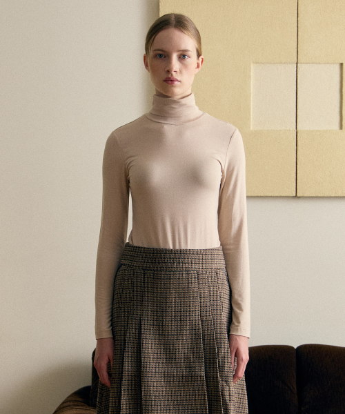 여성 터틀넥 스판 긴팔티셔츠 베이지 LATS0218