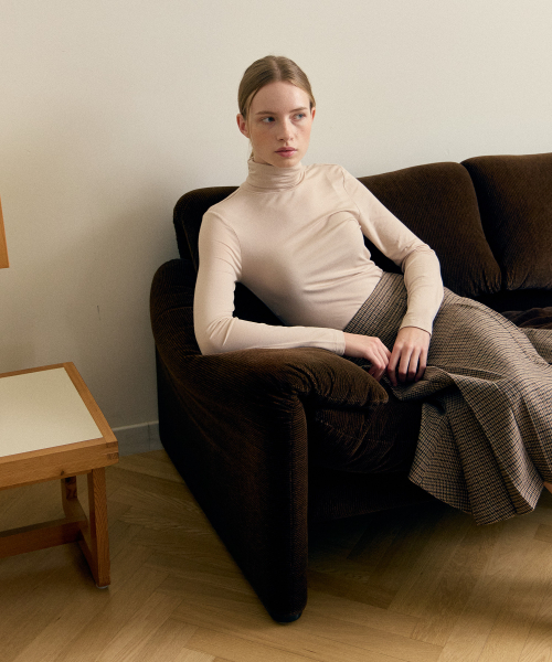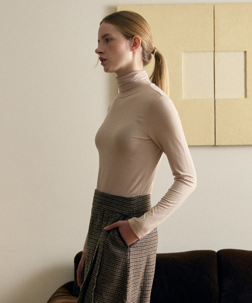 우먼즈 텐셀 슬림 터틀 넥 티셔츠 [버터 크림]