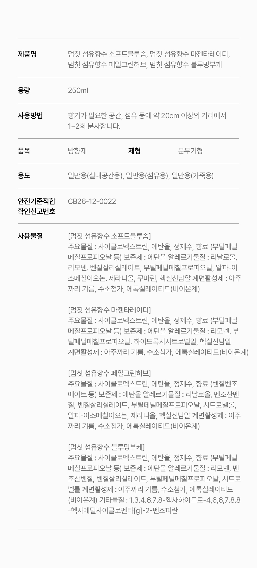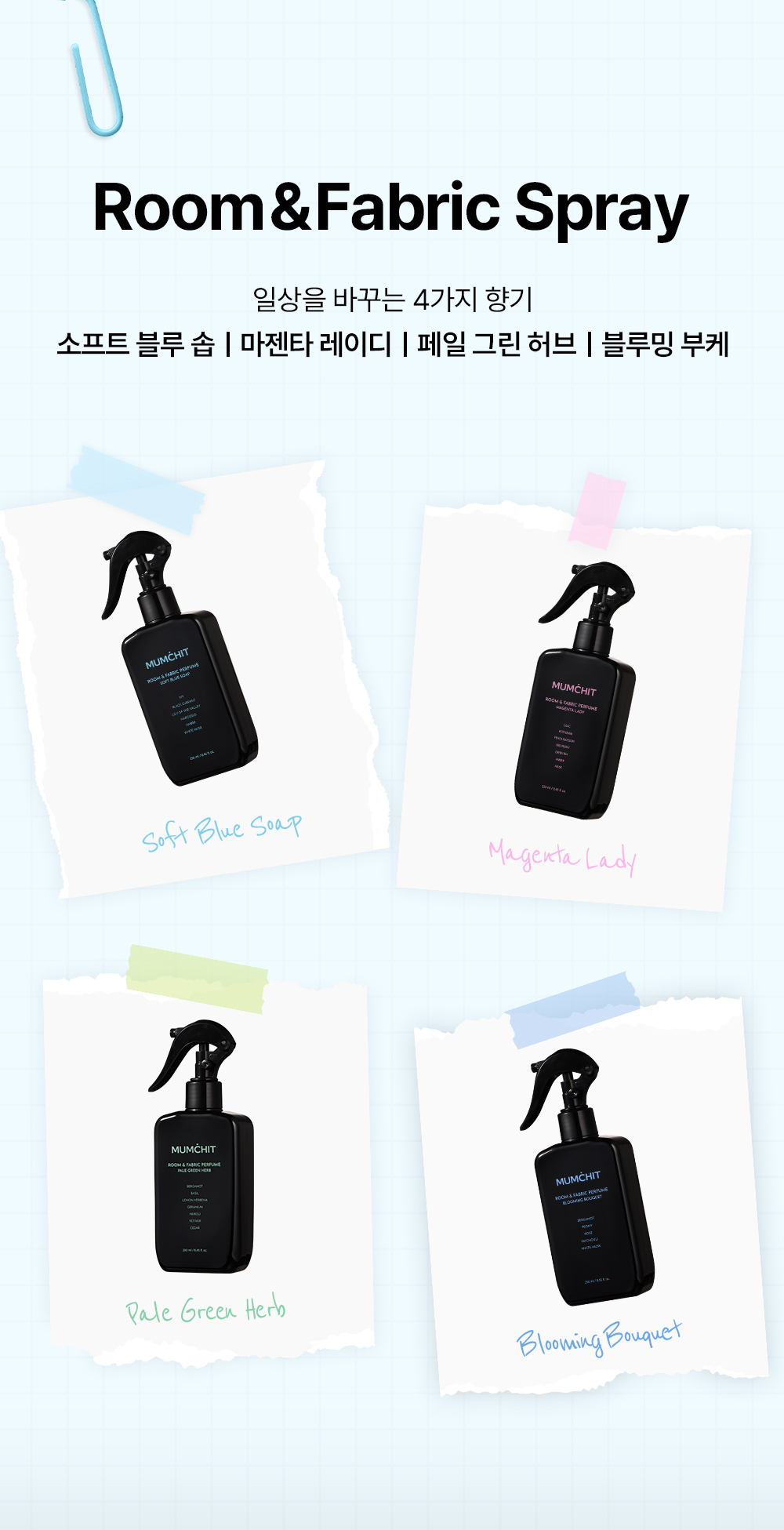 [SET] 대용량 섬유향수 250ml 3종 택 2(소프트블루솝/마젠타레이디/페일그린허브)