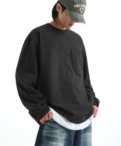 B. 오버핏 포켓 시보리 긴팔티 ( 4Color )