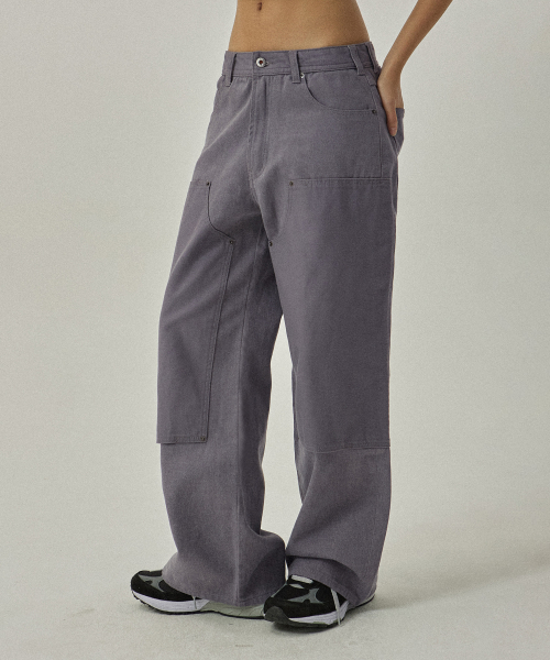 파번 4406 배색 더블니 카펜터 와이드핏 그레이시퍼플 코튼팬츠