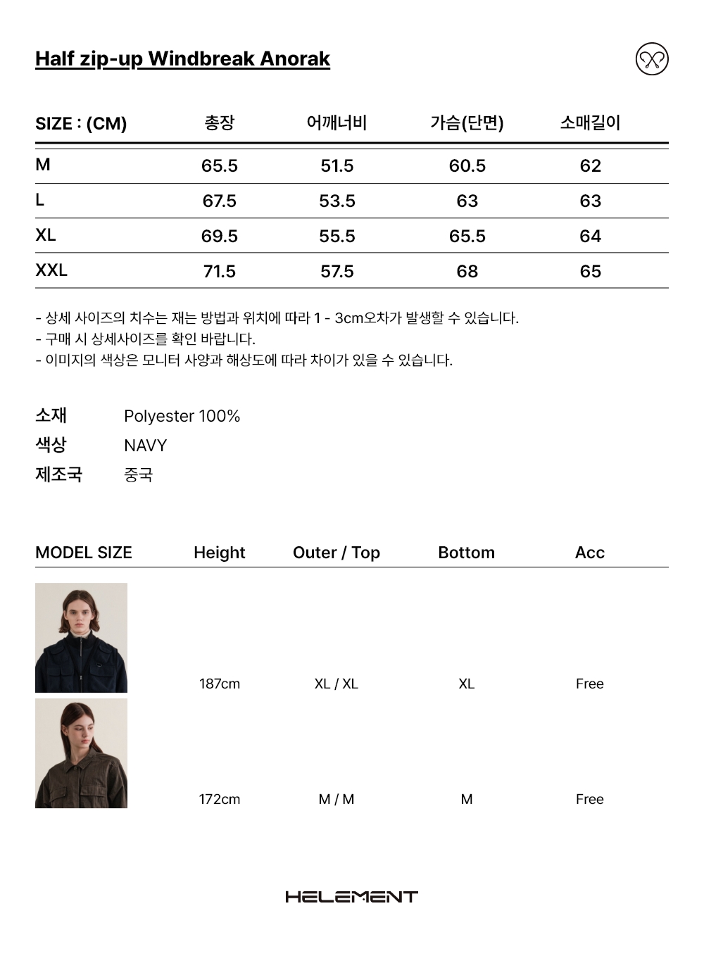 하프 집업 방풍 아노락 (NAVY)