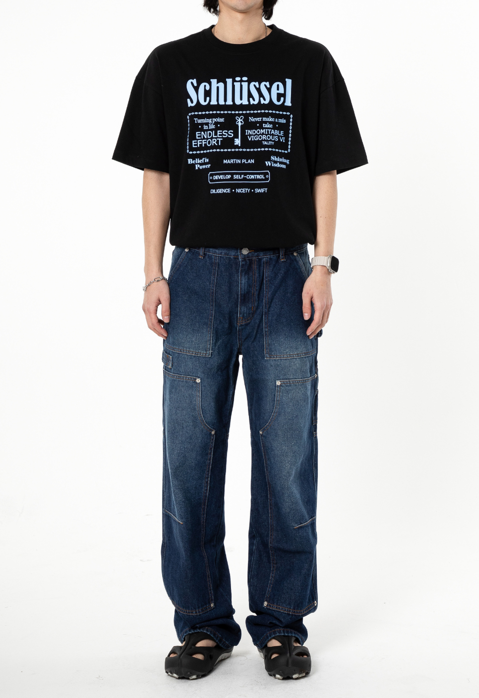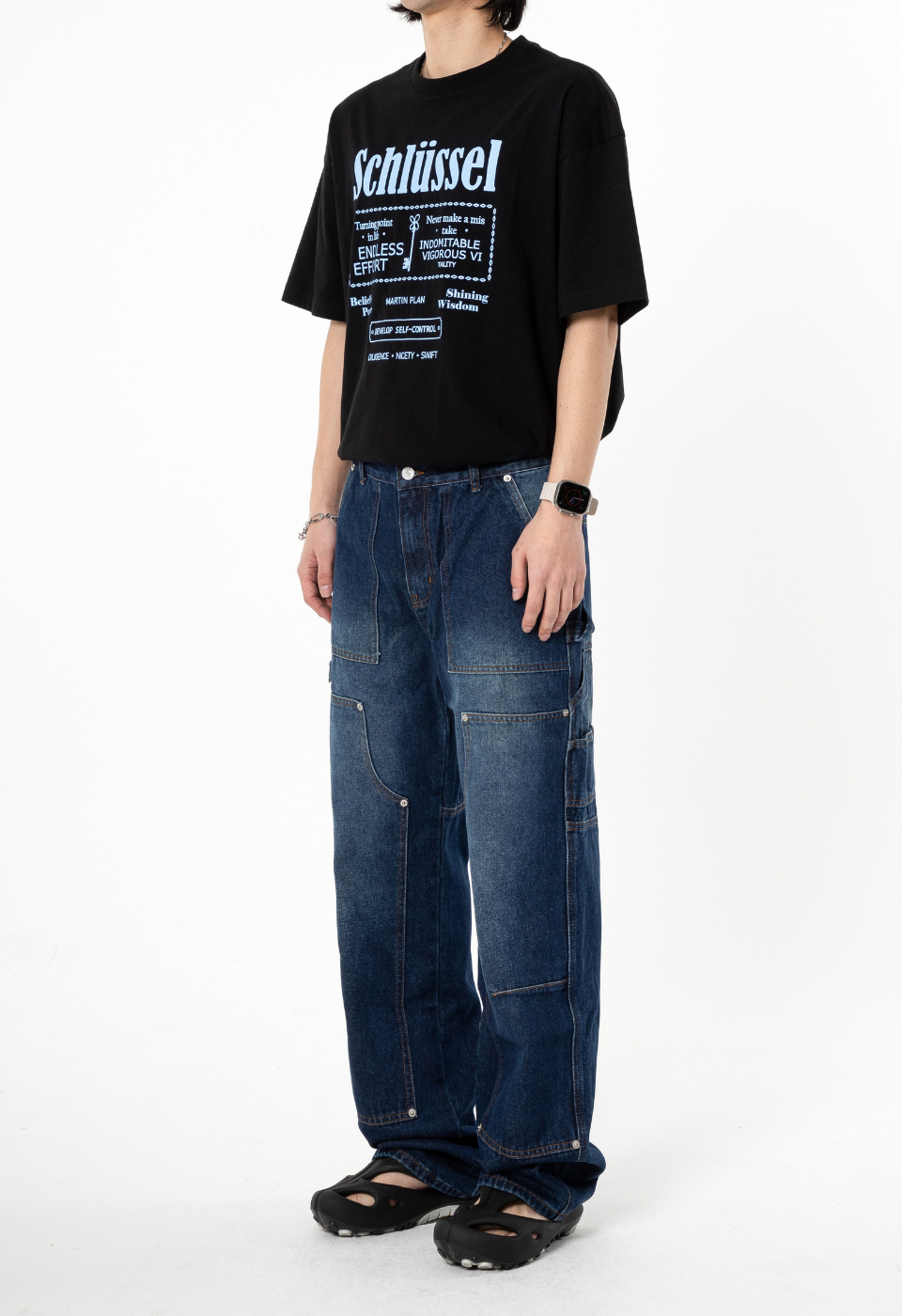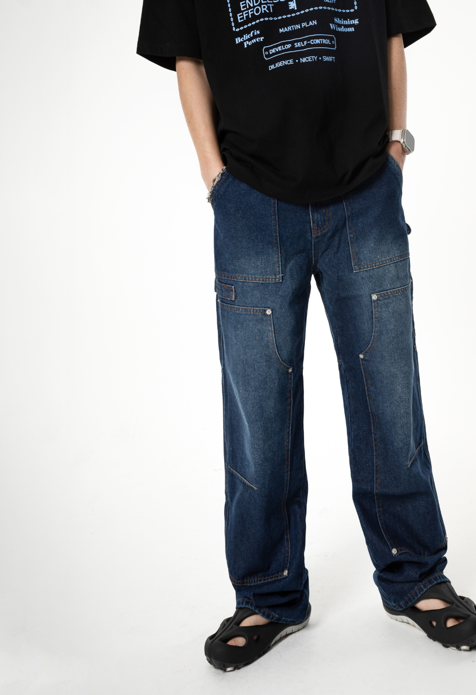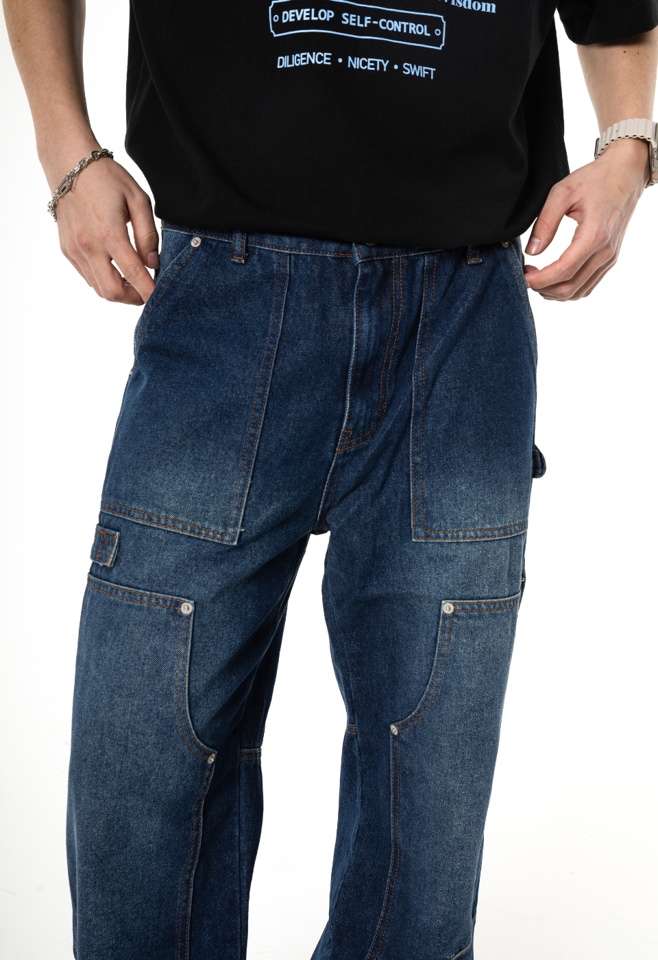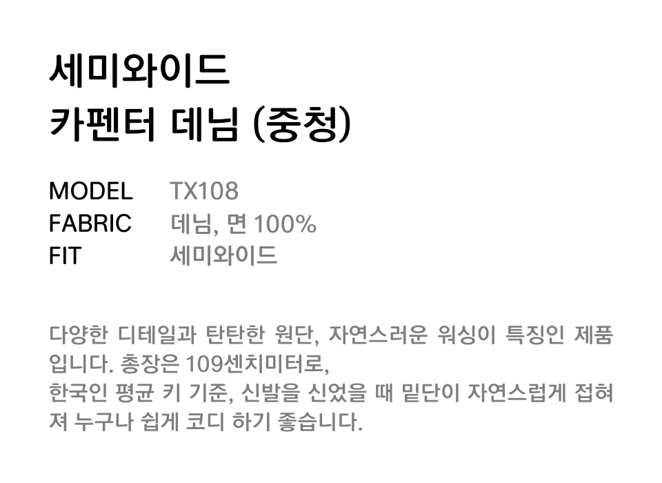 TX108 세미 와이드 카펜터 데님 (중청)
