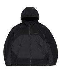 사인로고 우븐 배색 플리스 후드 자켓 - BLACK