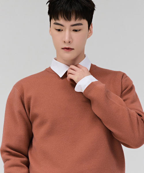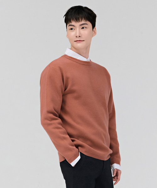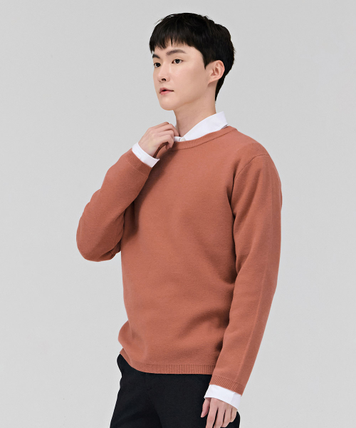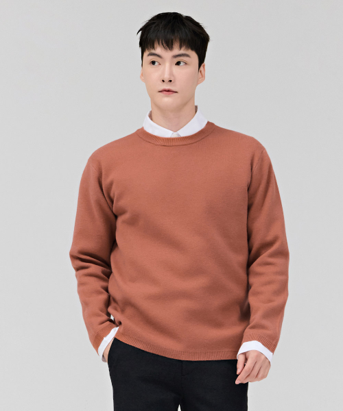 남성 베이직 라운드 스웨터-오렌지