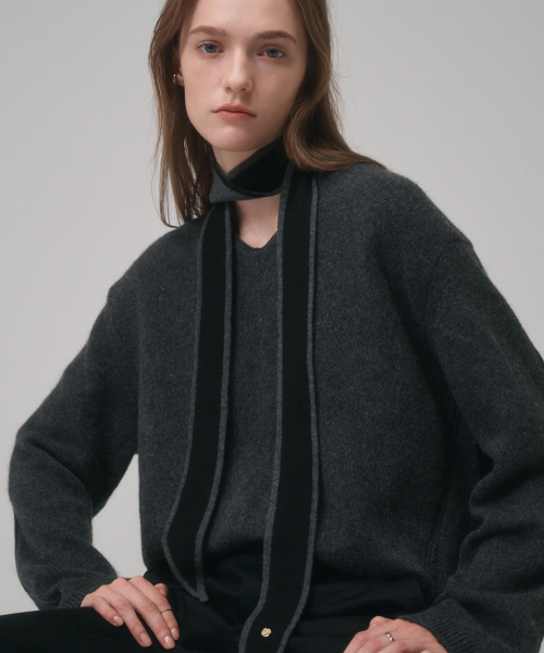 울 100% 트윌리 머플러 숏/롱 블랙차콜